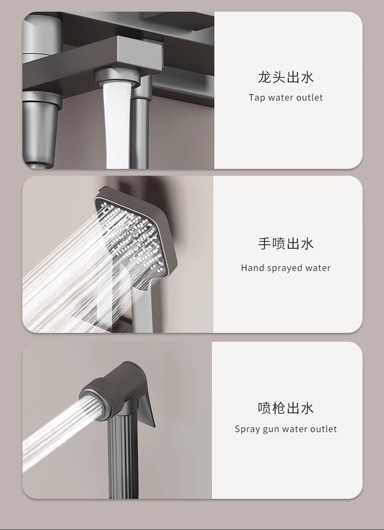 총 회색 간단한 샤워 가정용 샤워 세트 비탑 스프레이 모든 구리 차갑고 뜨거운 일정한 온도 비 목욕 노즐 샤워