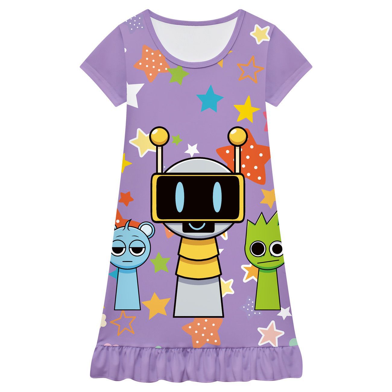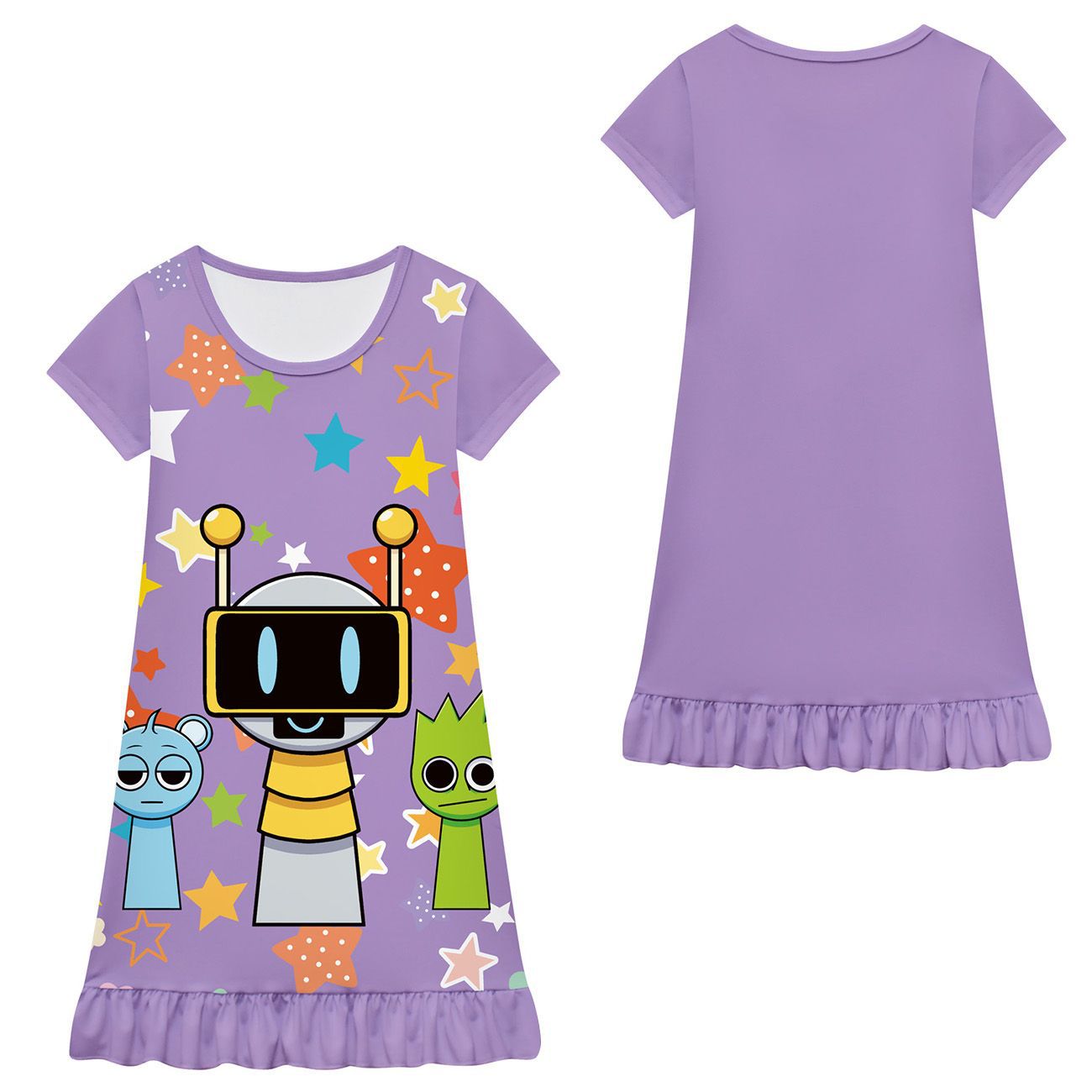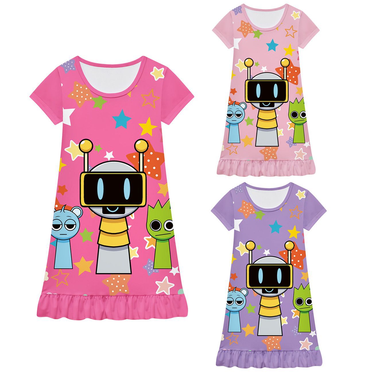 새 소녀의 집 잠자는 원피스 리듬 박스 만화 캐릭터 어린이 주름진 원피스 82260스토어 가기