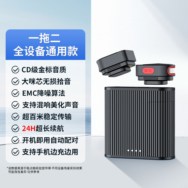 H01 무선 칼라 클립 마이크 휴대 전화 라이브 방송 앵커 전용 녹음 한 드래그 두 충전 창고 소음 감소 라디오 마이크