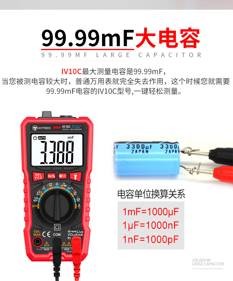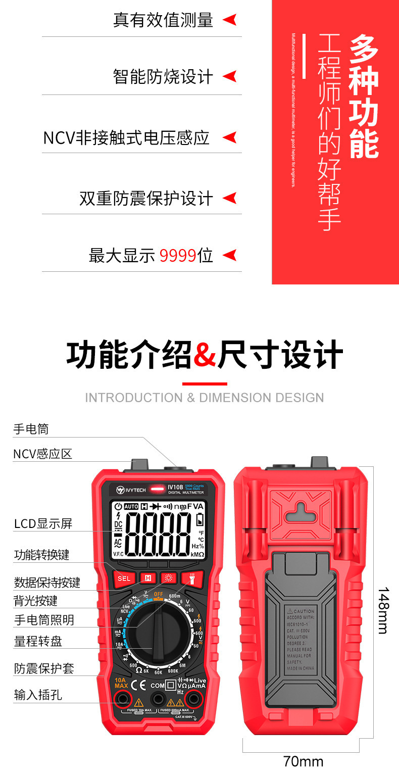 Ivitco IV10B 디지털 멀티 미터 고정밀 다기능 디지털 디스플레이 Ammeter 가정용 소형 유니버설 미터