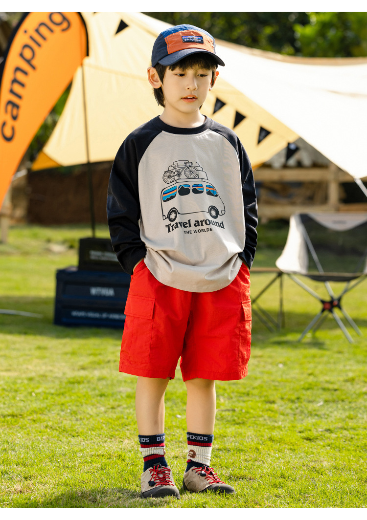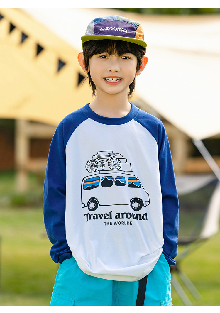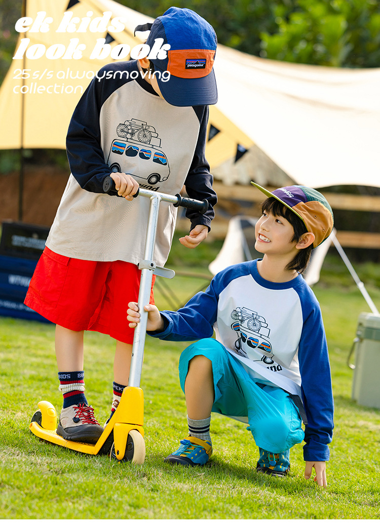 EK 아동복 일본식 야외 소년 느슨한 리글스 긴소매 티셔츠 대형 어린이 서양식 특색베이스 탑
