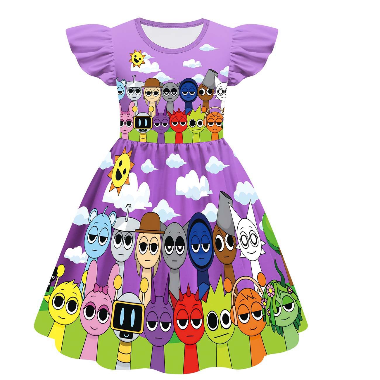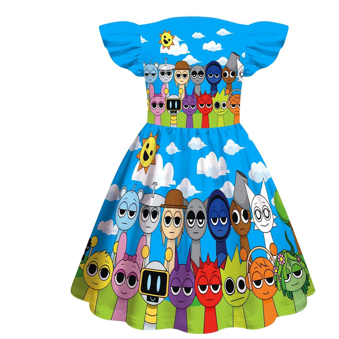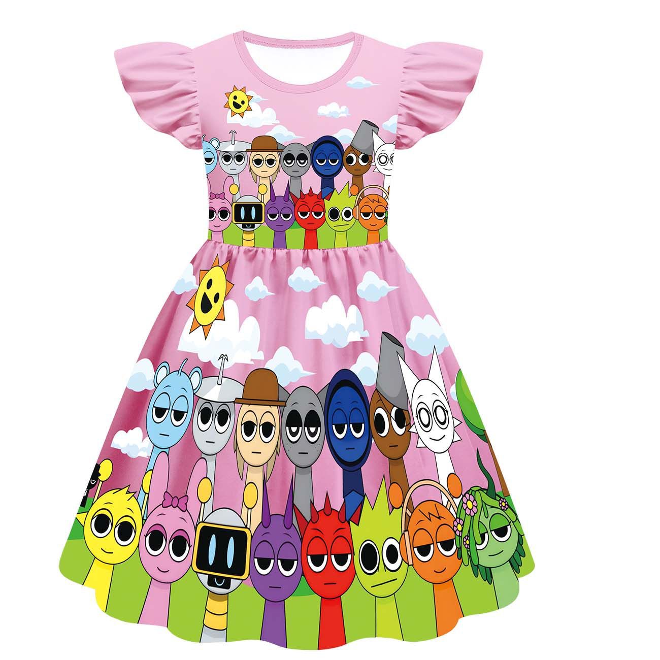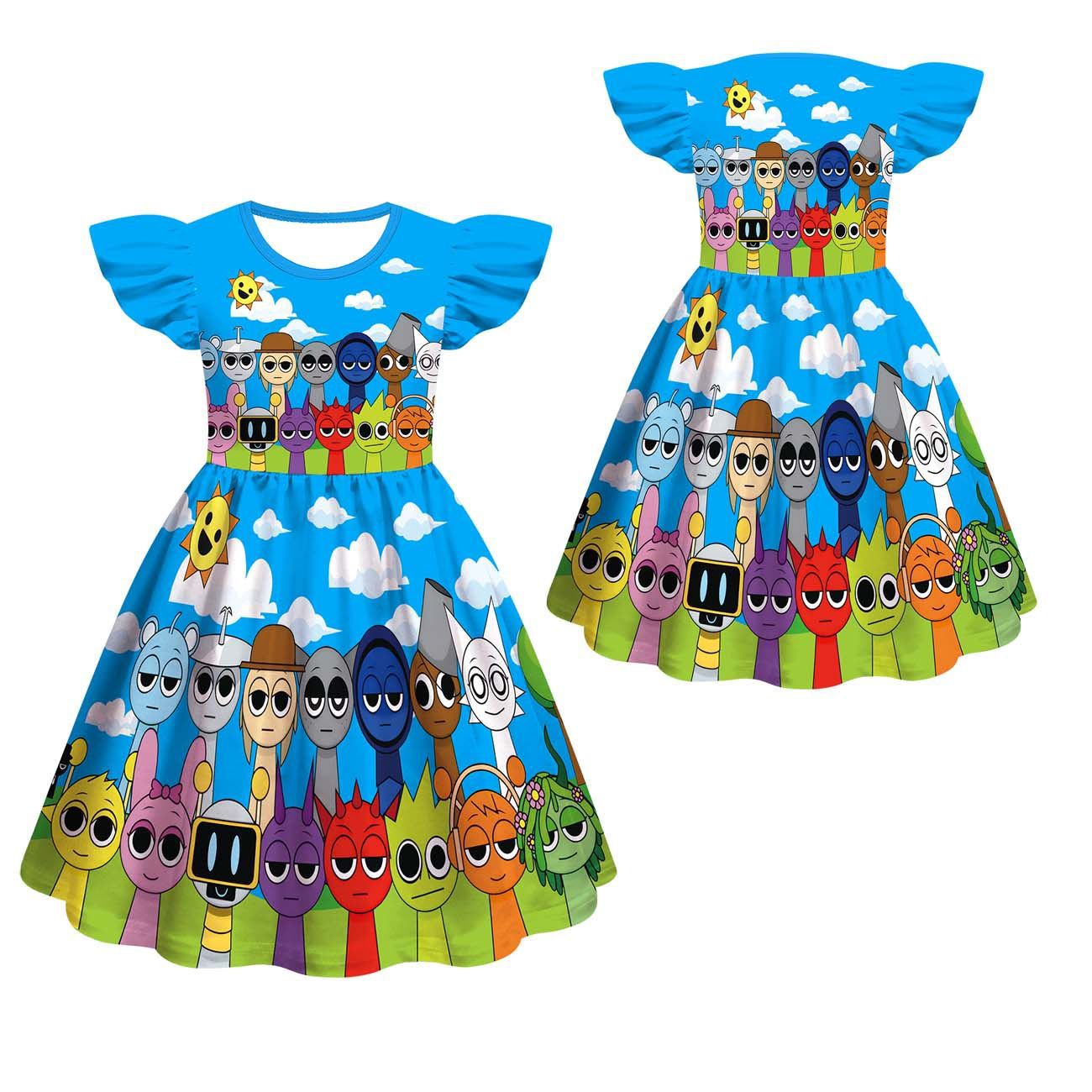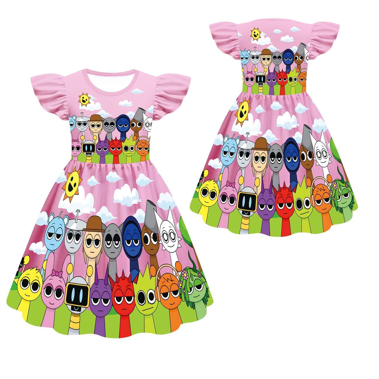 새로운 어린이 원피스 코스프레 리듬 박스 스프 룬키 소녀 슬리브 A 라인 스커트 82232