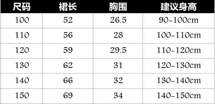 6个码数:100 110  120  130 140  150