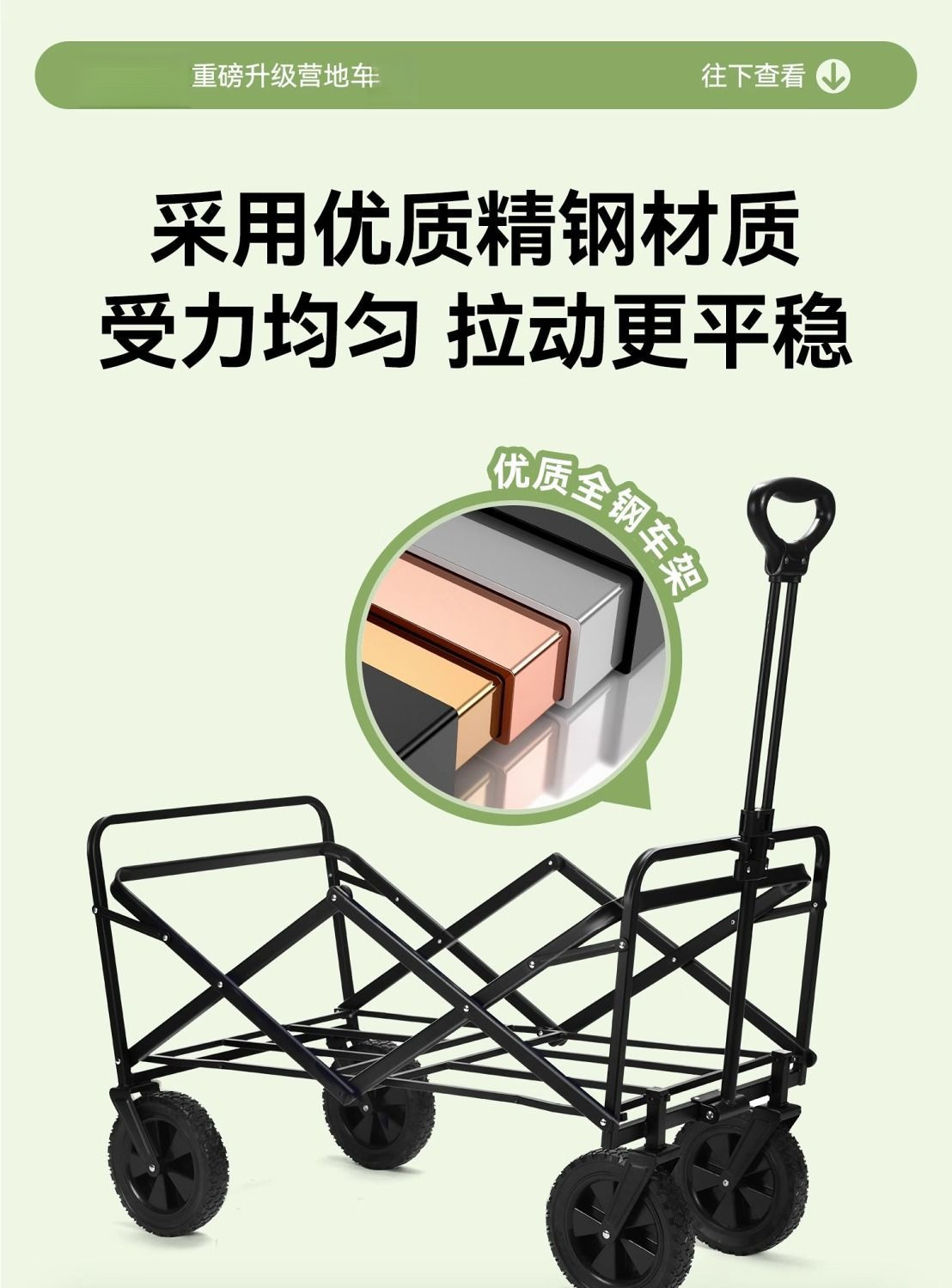 • 캠프카 [사일런트 휠 + 두꺼워진 프레임 + 초내하중] - (후방 주행 가능) 확대된 카키색 [확대된 타이어 / 두꺼워진 전체 스틸 프레임]