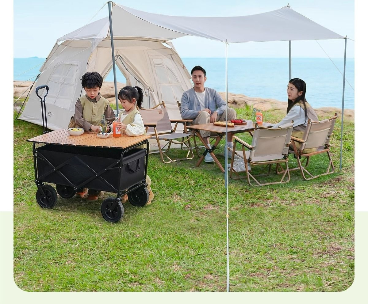 • [데스크탑 조합] 테이블이 포함된 캠프카 [이중 목적을 위한 차량 1대, 간편한 여행] - [카키] 클래식 스타일 [대담한 올스틸 프레임/회전 바퀴]
