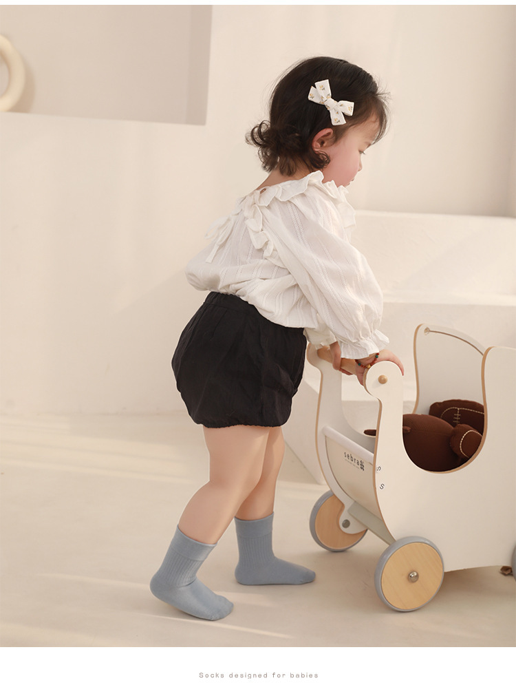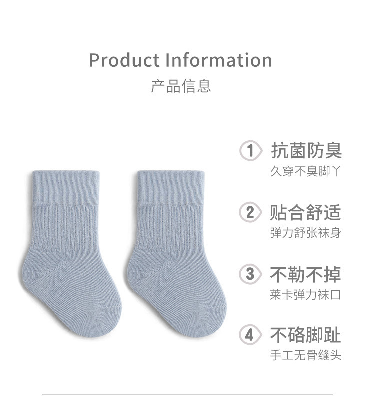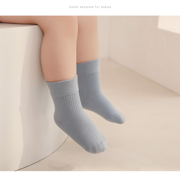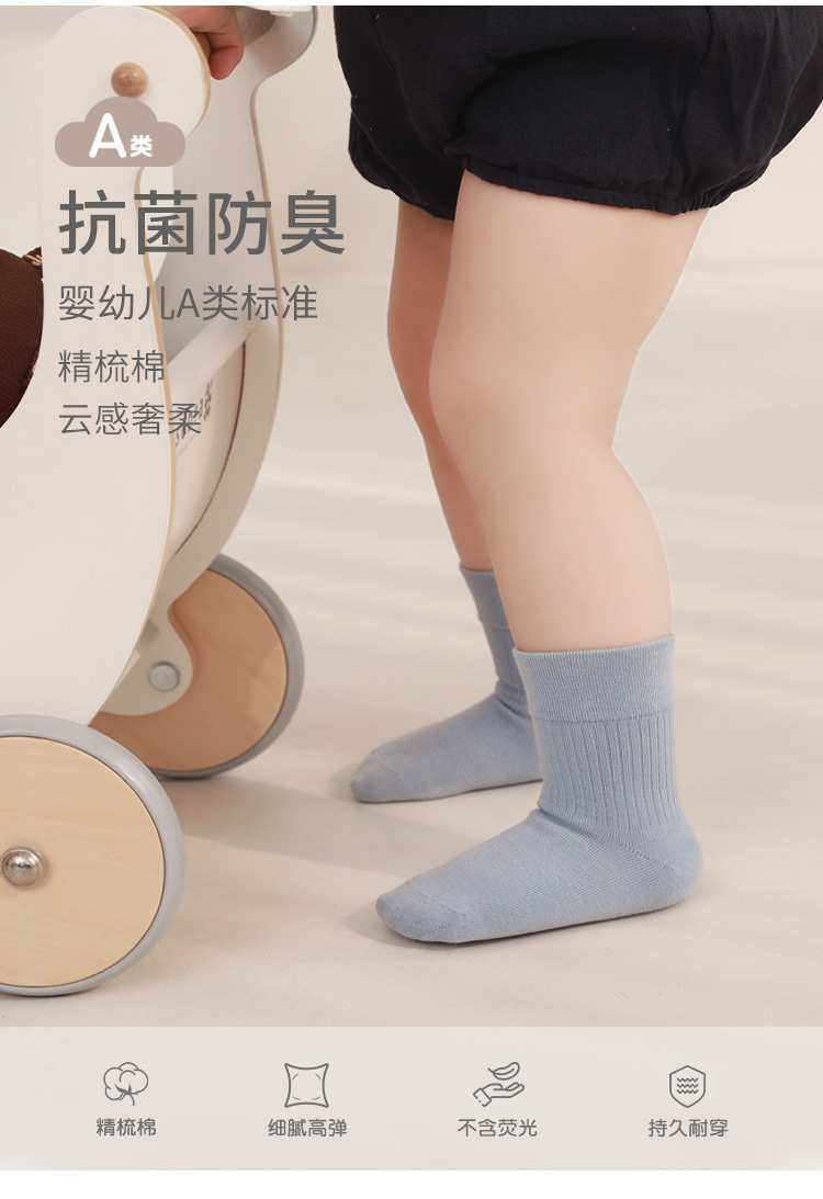 초가을 아기 중목 양말, 무봉제 항균 루즈핏 남아용 컬리지 스타일 단색 면 양말, 아동 양말 도매스토어 가기