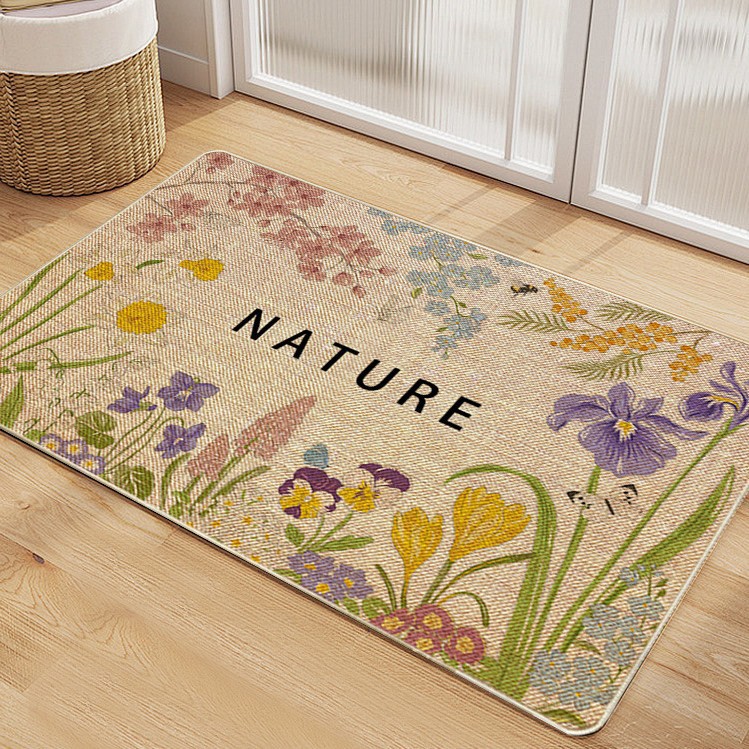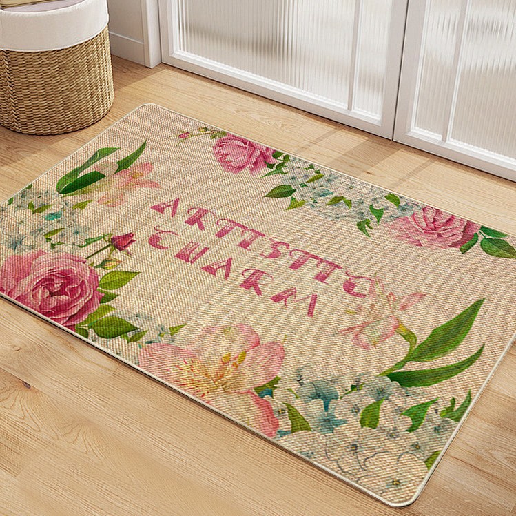 국경 간 고급 린넨 신선한 꽃 고무 매트 침실 문 매트 거실 문 매트 욕실 매트