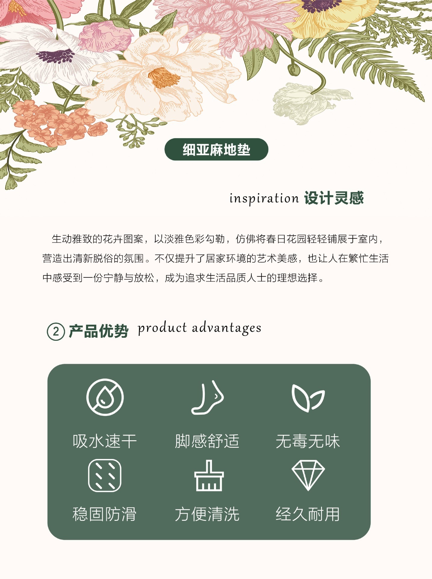 • 고급 린넨-작은 신선한 꽃 바닥 매트 10