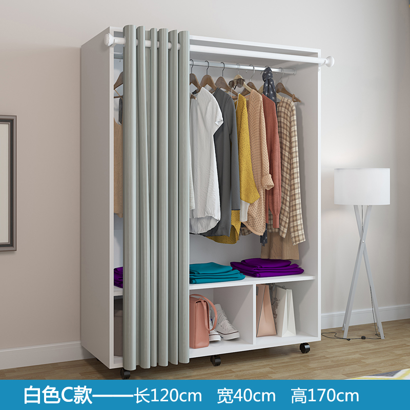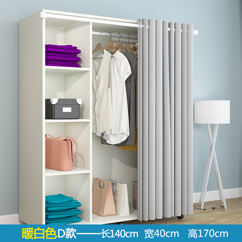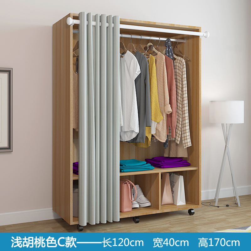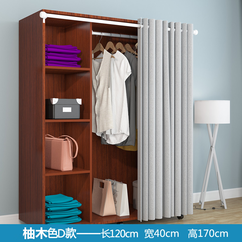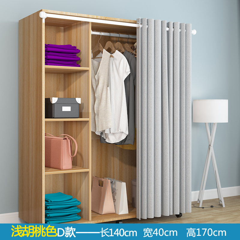 옷장 간단한 현대 경제적 인 조립 침실 천 커튼 도어 단단한 나무 캐비닛 어린이 나무 기숙사 옷장스토어 가기