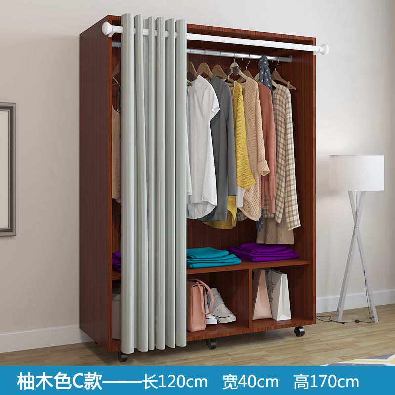 옷장 간단한 현대 경제적 인 조립 침실 천 커튼 도어 단단한 나무 캐비닛 어린이 나무 기숙사 옷장