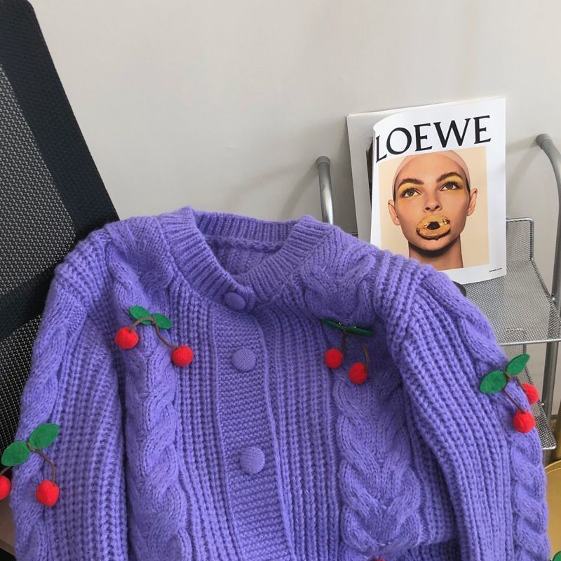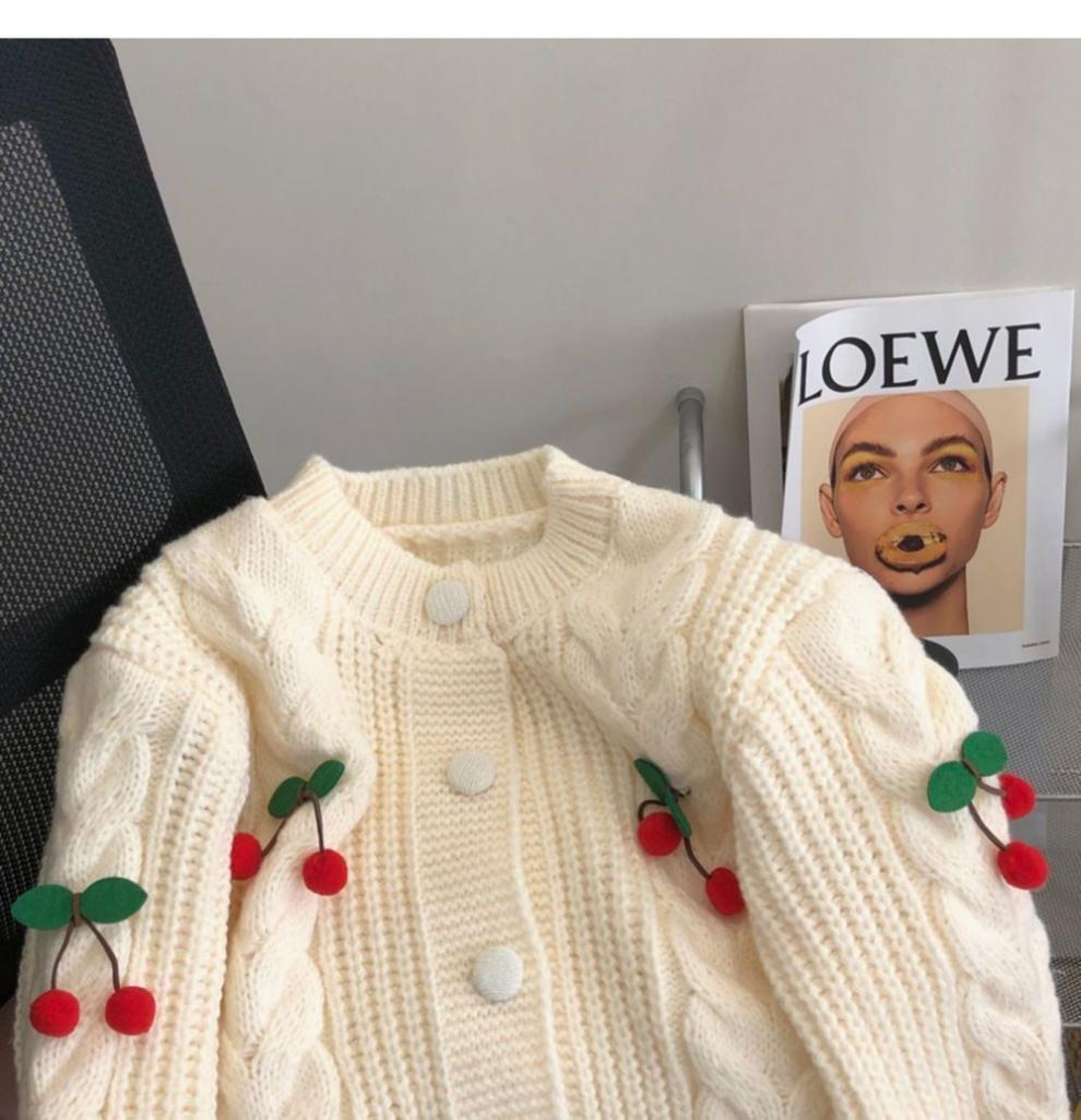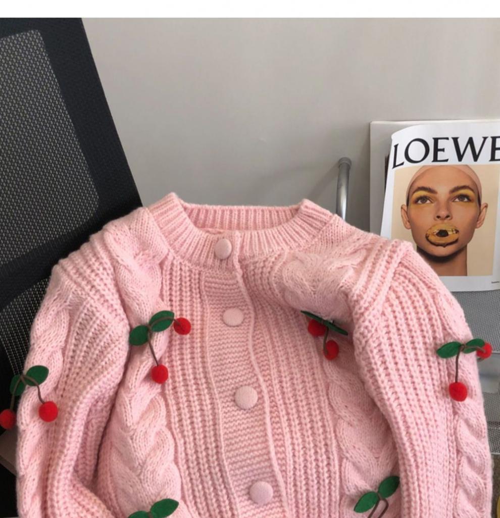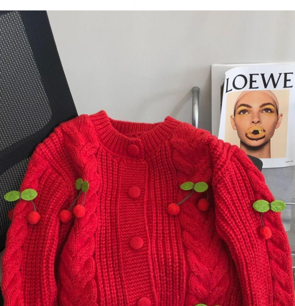 A6C 레트로 달콤한 우아한 니트 스웨터 카디건 프랑스 슬리밍 트위스트 스웨터 3 차원 체리 싱글 브레스트스토어 가기