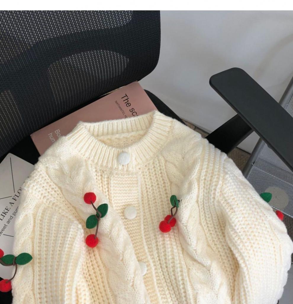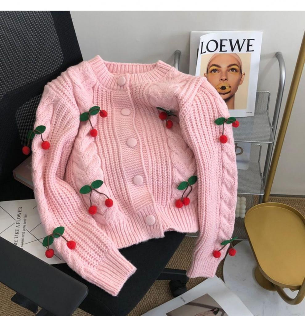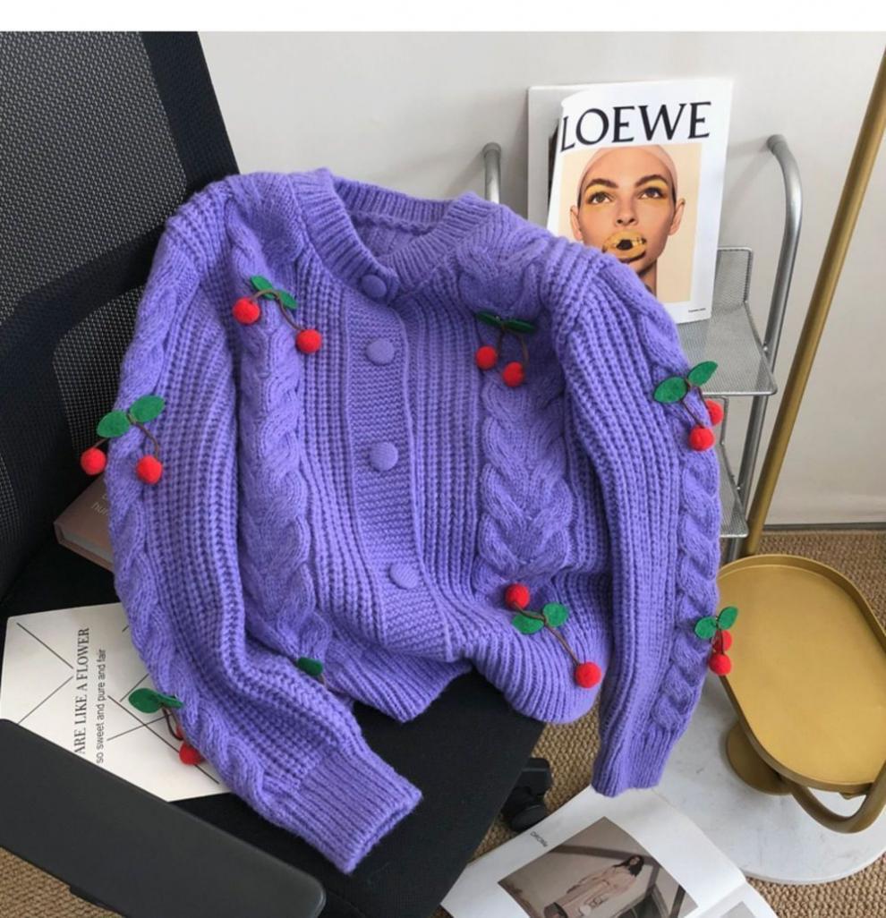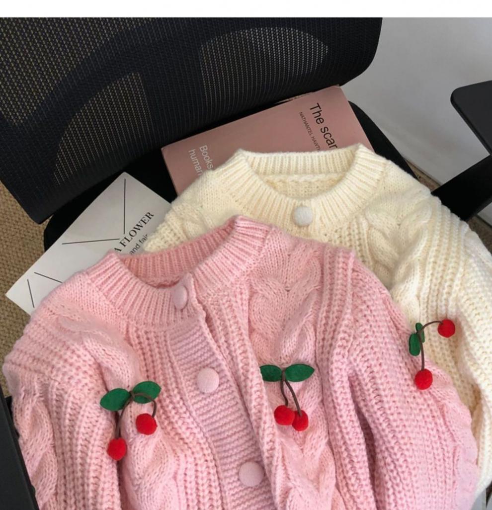 A6C 레트로 달콤한 우아한 니트 스웨터 카디건 프랑스 슬리밍 트위스트 스웨터 3 차원 체리 싱글 브레스트스토어 가기