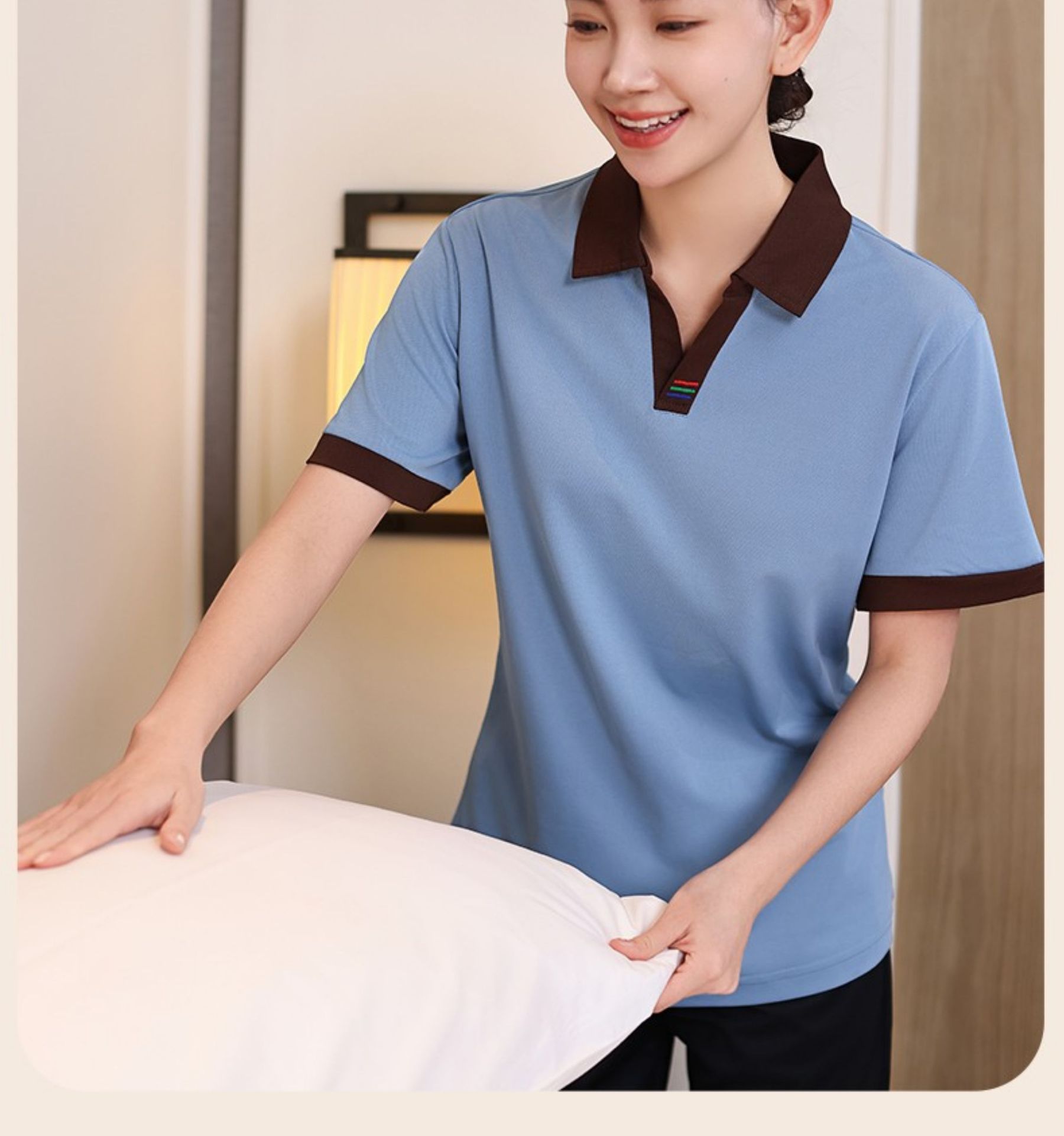 반팔 얇은 V-목 청소 옷 호텔 방 청소기 여름 옷 쇼핑몰 부동산 청소기 작업복스토어 가기