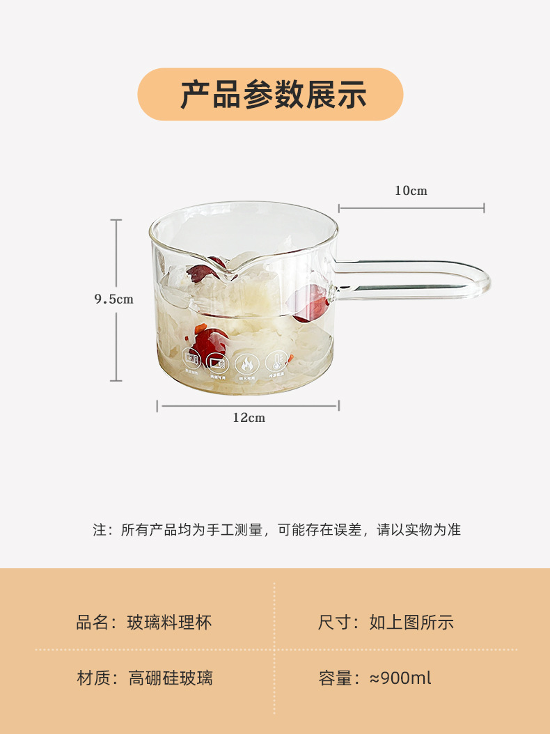 높은 붕규산 유리 내열 우유 컵 간단한 커피 공유 냄비 계란 분리 가정용 베이킹 컵 요리 컵스토어 가기