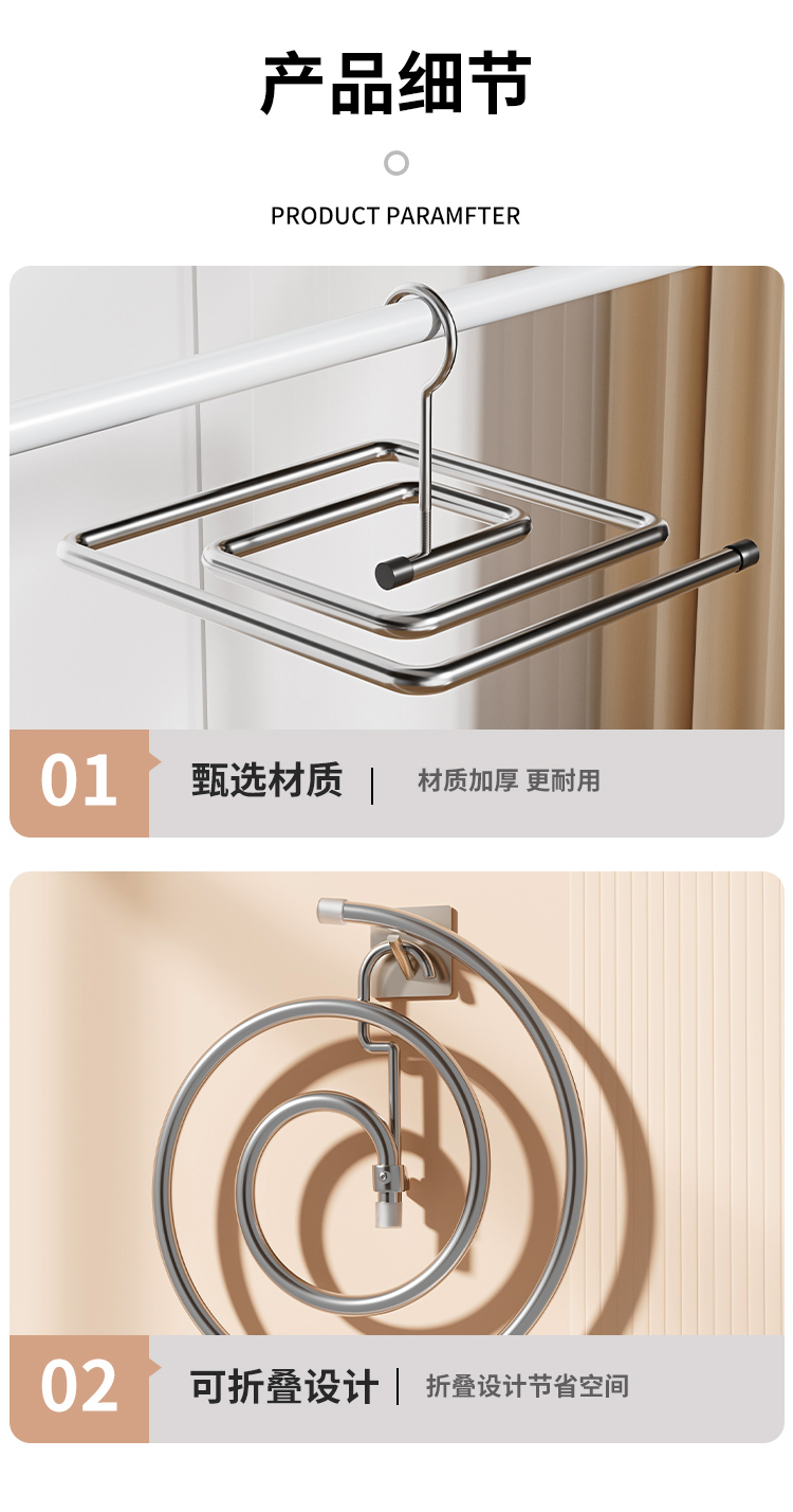 • [2개입] 스테인레스 스틸 - 원형 [2.2m 길이의 이불 건조 가능]