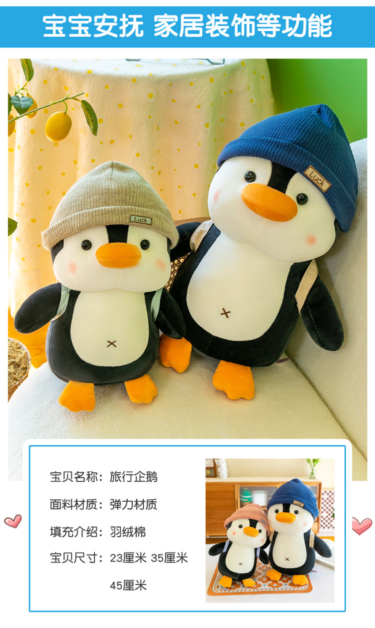 귀여운 여행 펭귄 인형 국경 봉제 장난감 장식품 인형 펭귄 베개 어린이 사진 머펫 인형스토어 가기