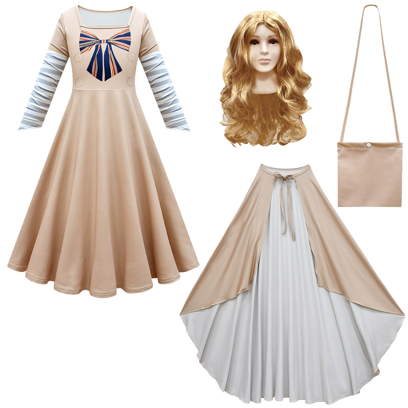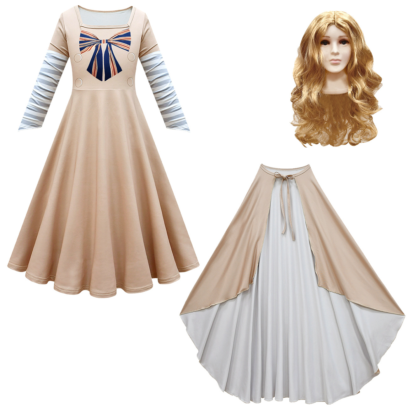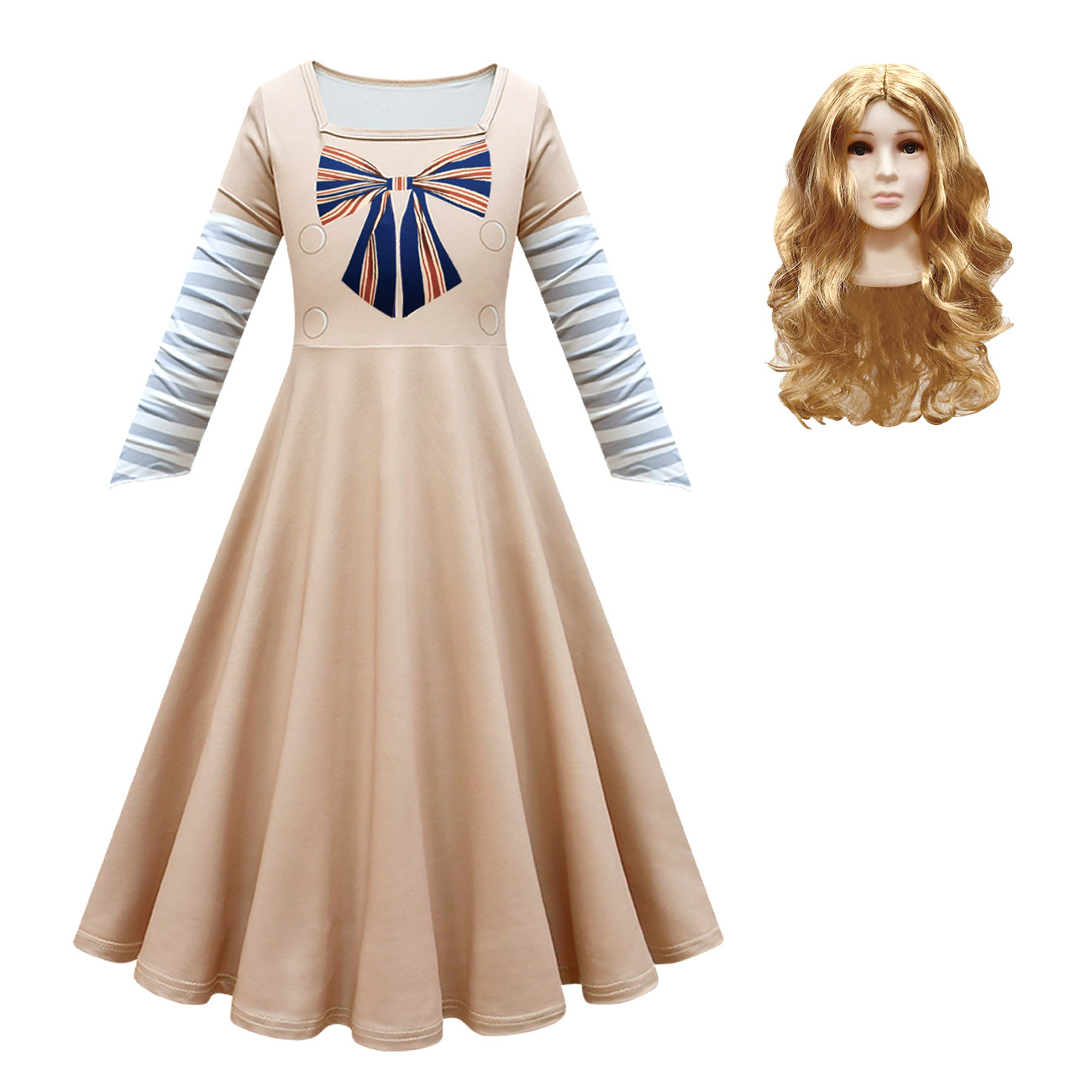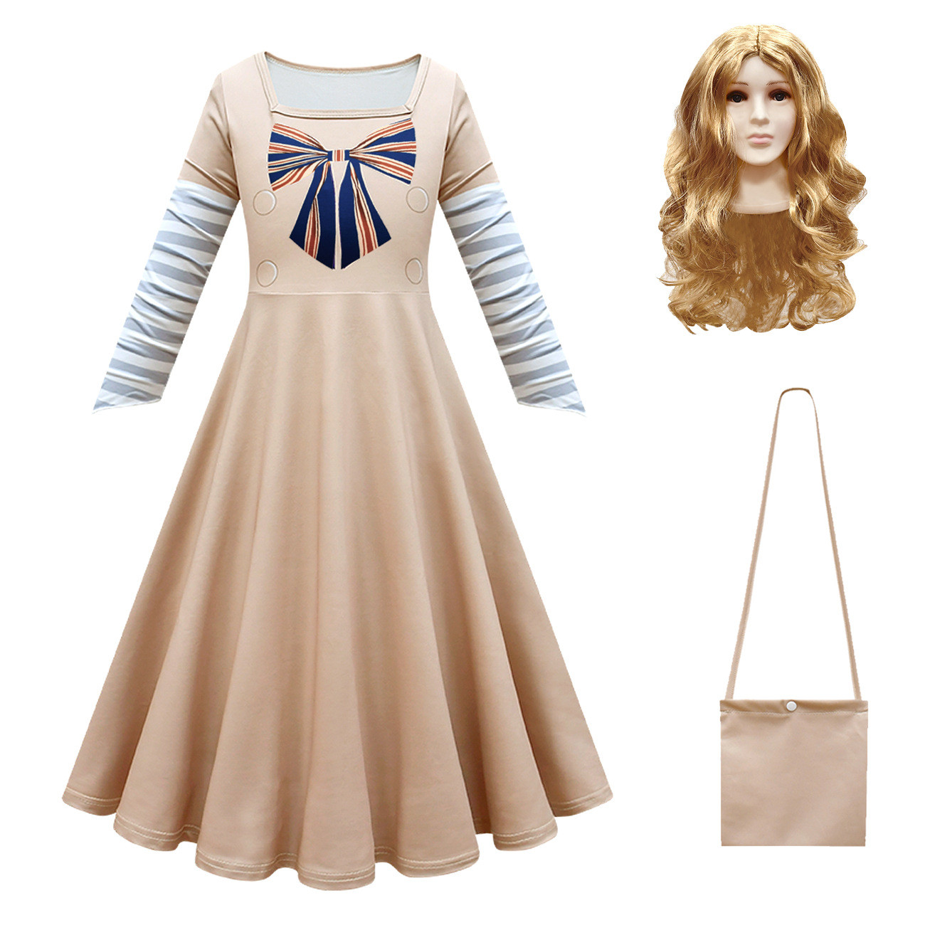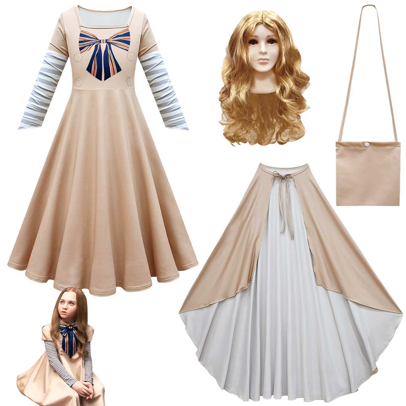 새로운 어린이 긴팔 원피스 코스프레 M3GAN 소녀 긴 원피스 망토 멀티 피스 세트 81259