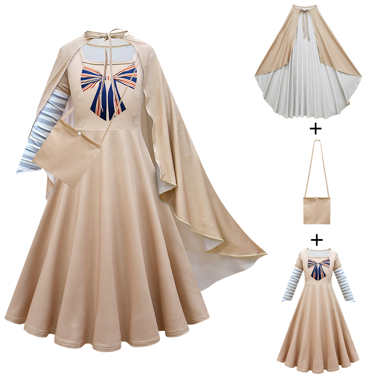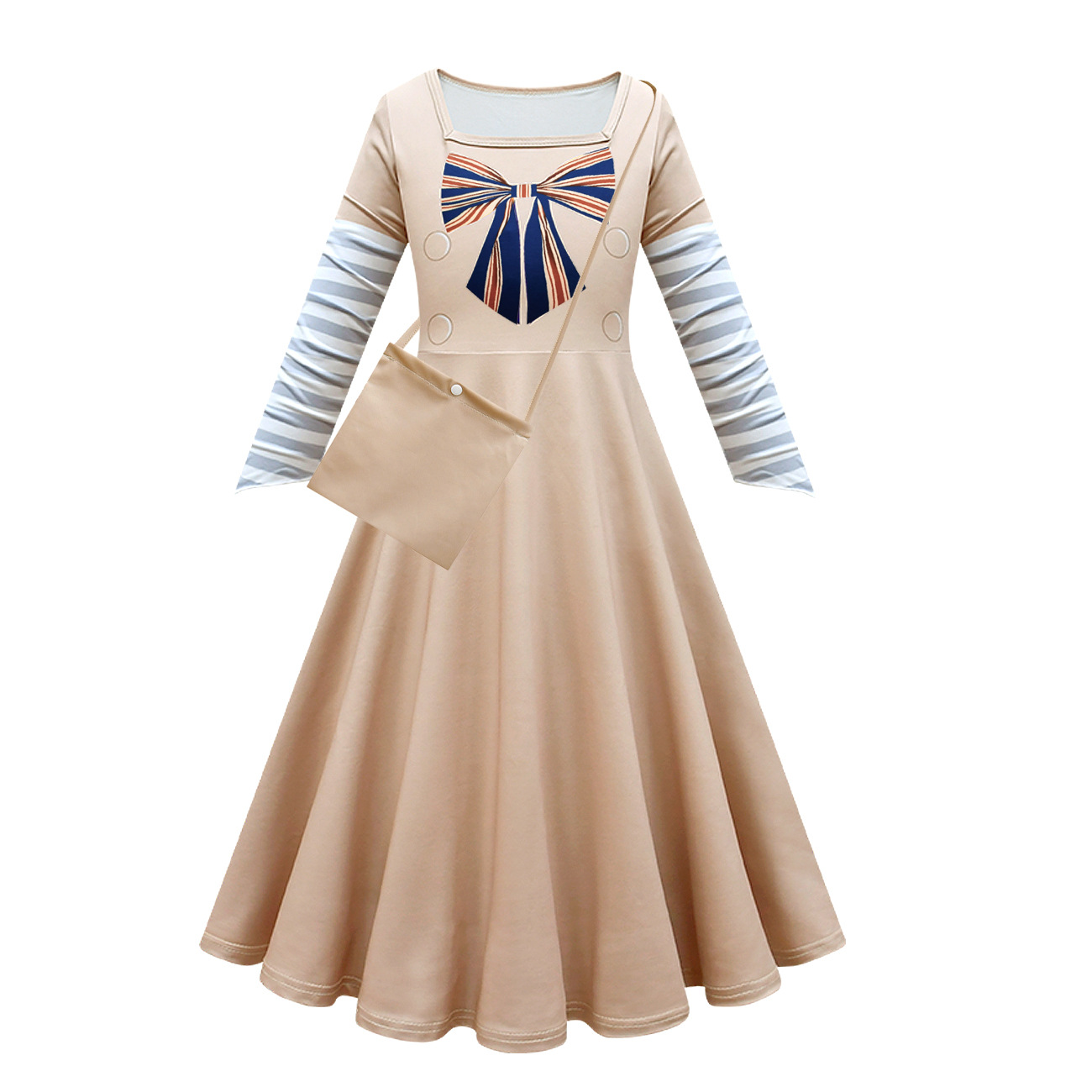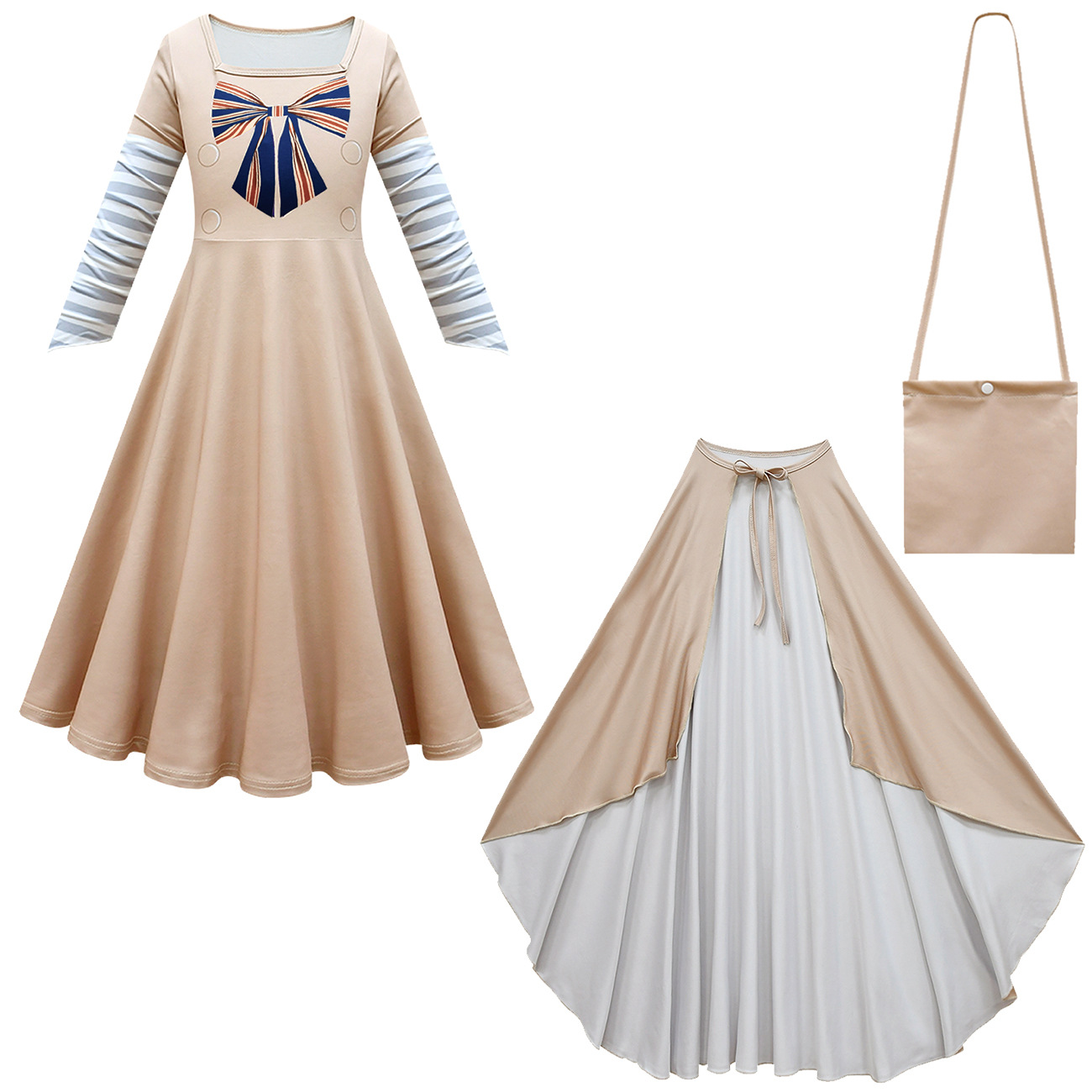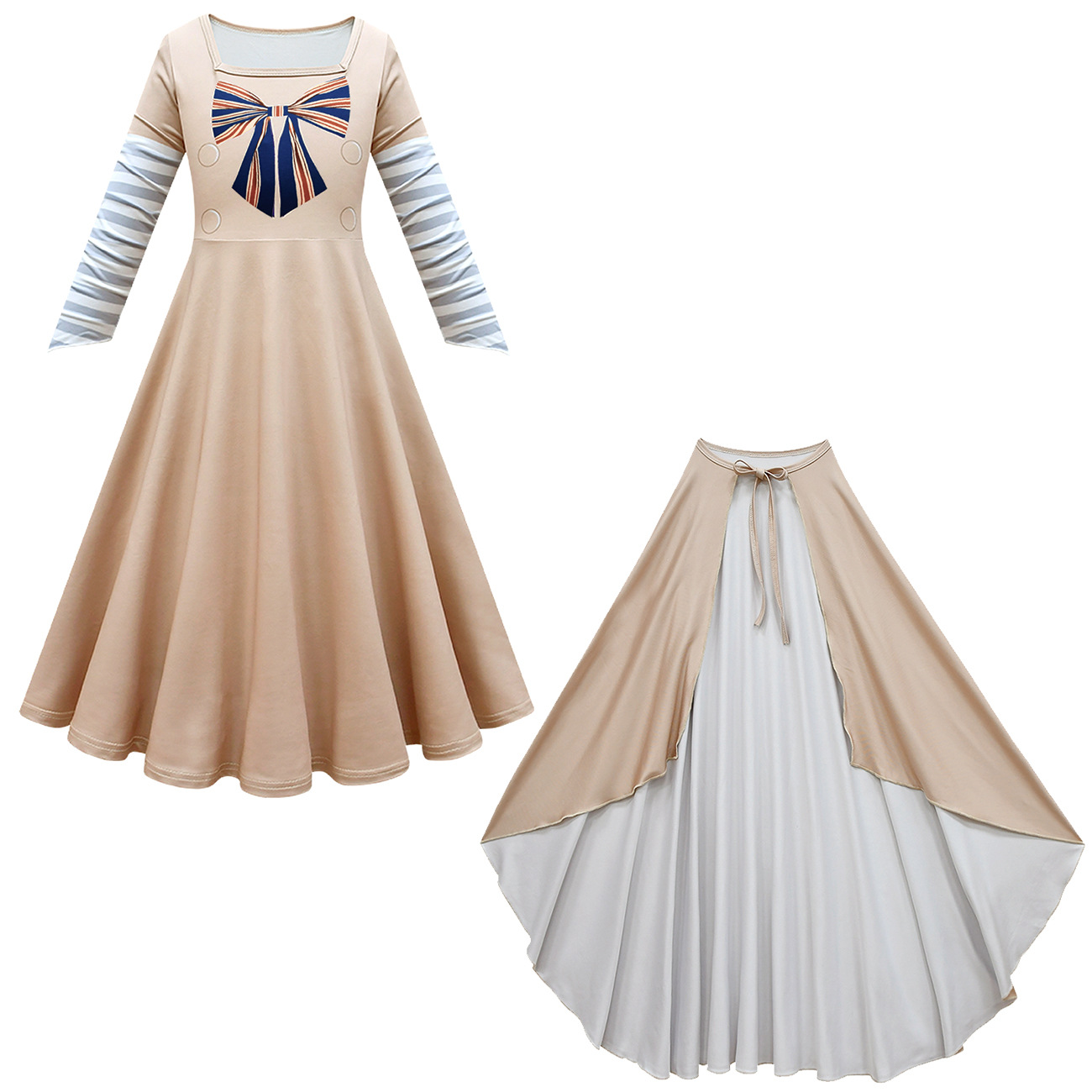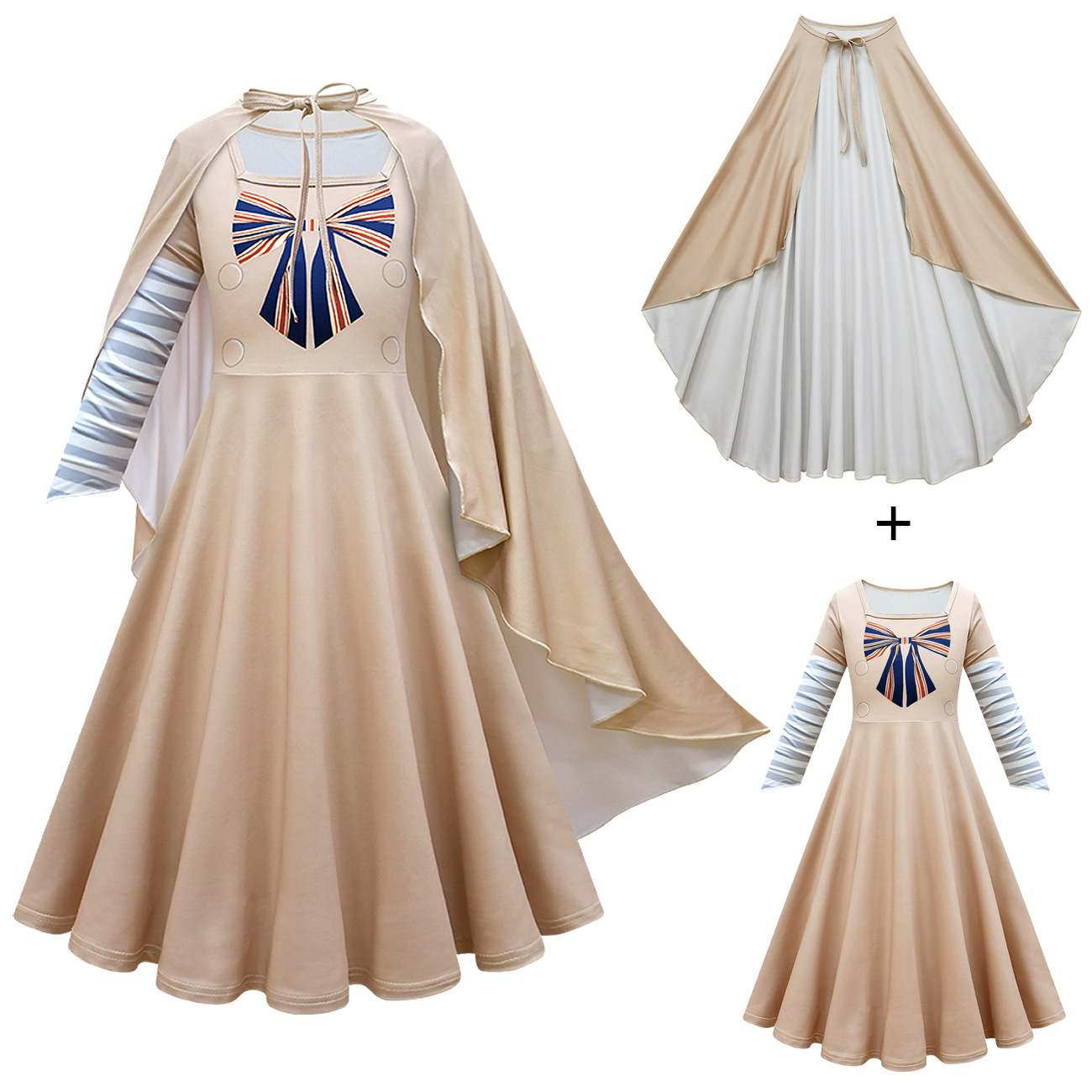 새로운 어린이 긴팔 원피스 코스프레 M3GAN 소녀 긴 원피스 망토 멀티 피스 세트 81259