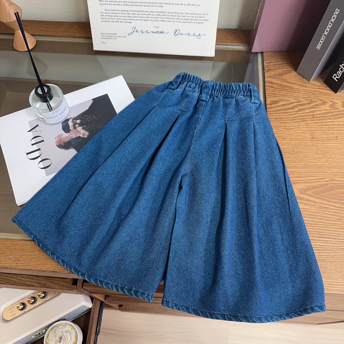 2025 여자 세트 여름 새 한국 스타일 소녀의 최고 민소매 셔츠 데님 넓은 다리 바지 투피스 세트