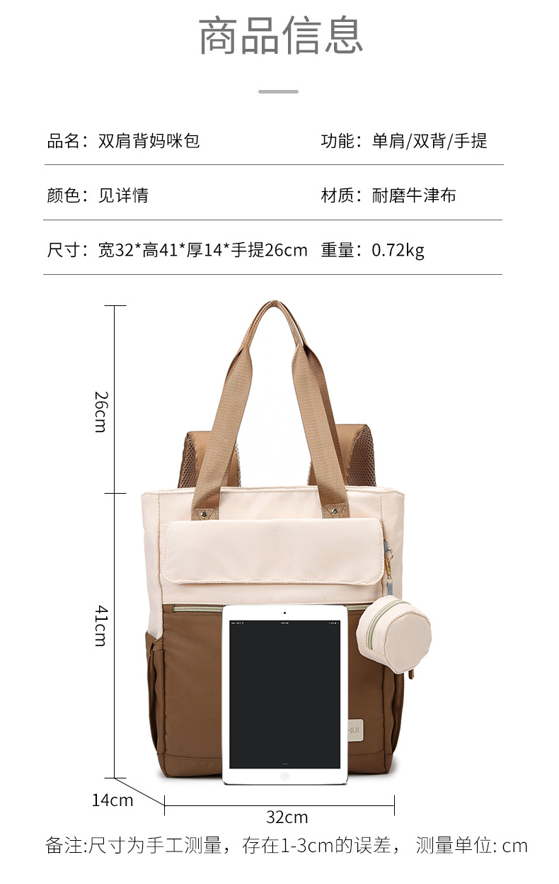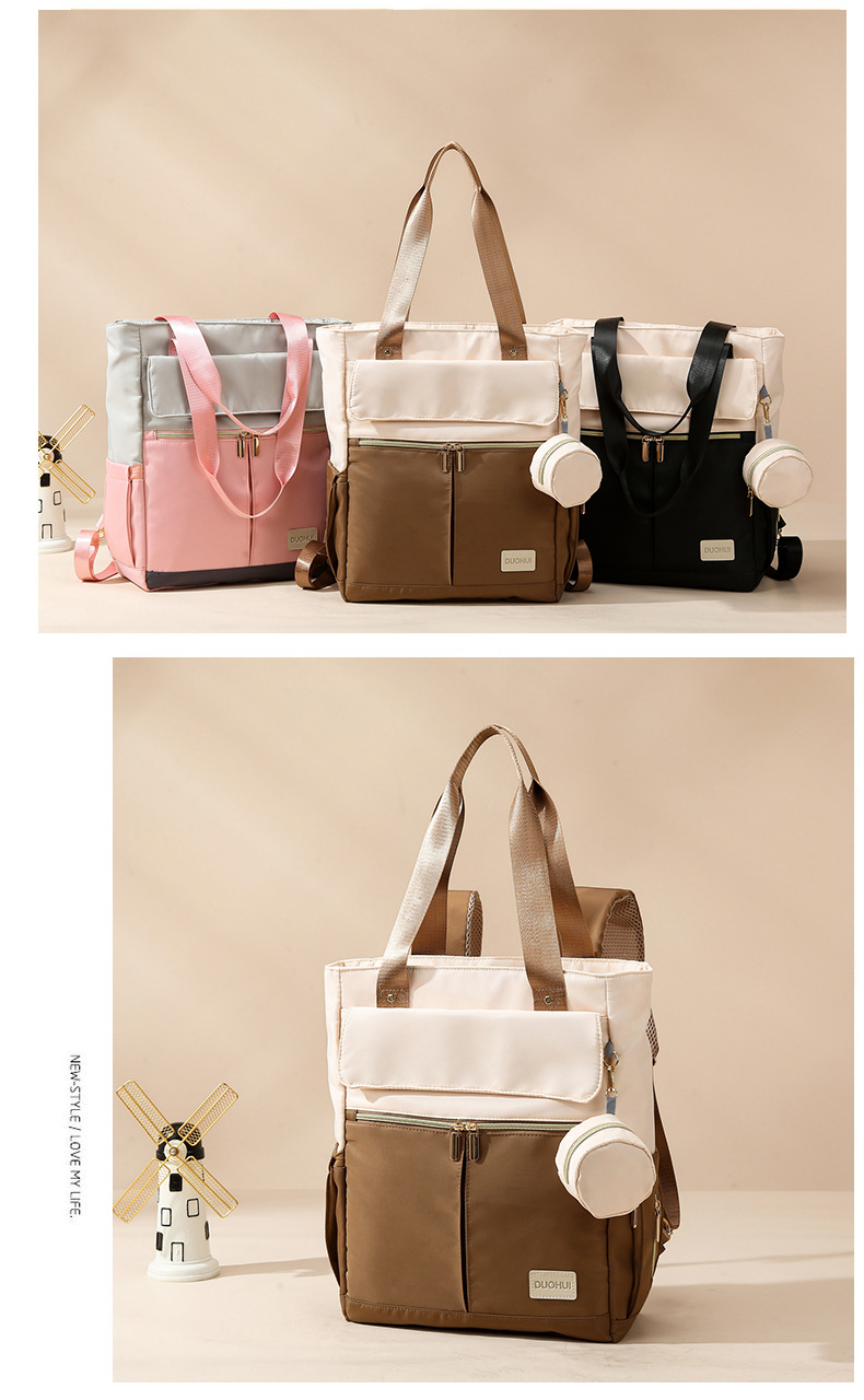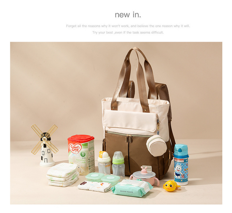 엄마 가방 아기 야외 기저귀 가방 다기능 크로스 바디 더블 컬러 블록 엄마와 아기 가방 대용량 열 절연 병 가방