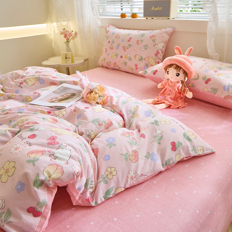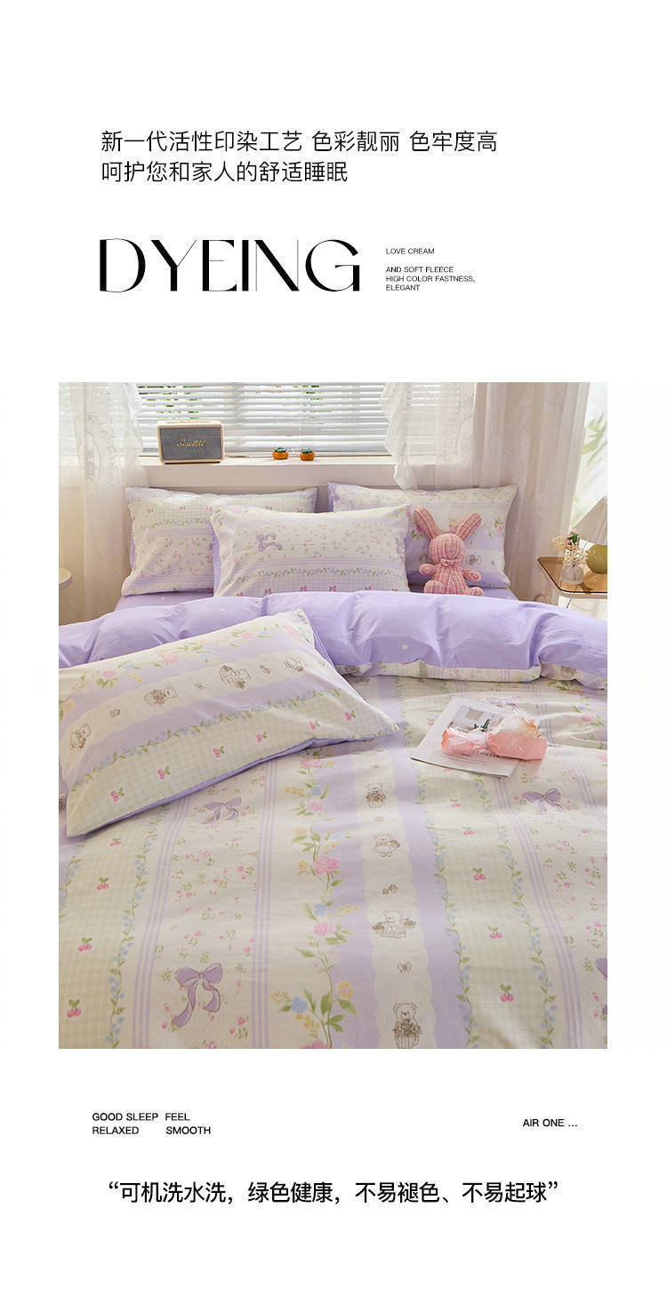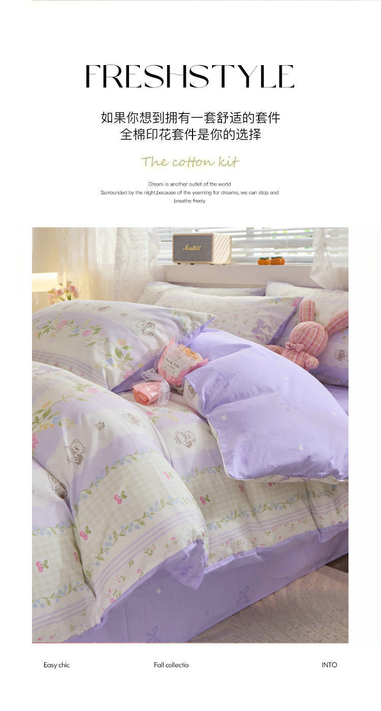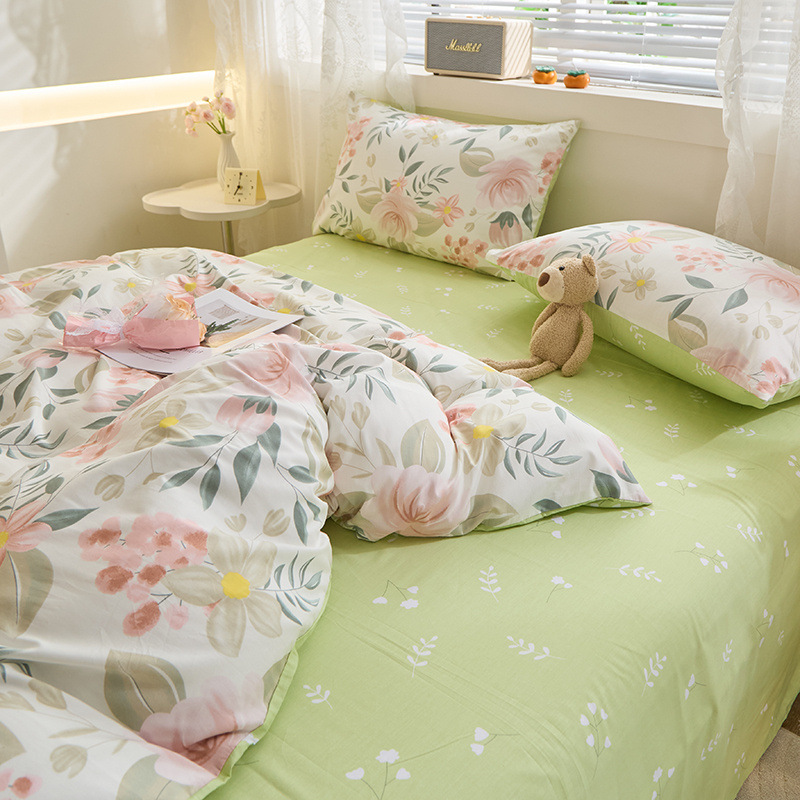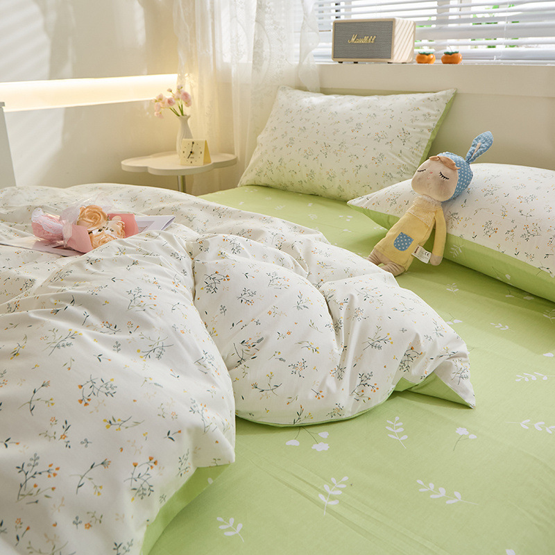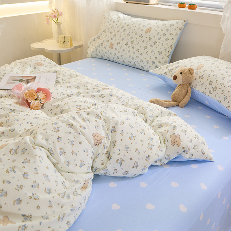 Ins 스타일 작은 꽃 면화 13372 4 피스 세트 코튼 소녀의 심장 침대 시트 퀼트 커버 학생 기숙사 3 피스 세트스토어 가기
