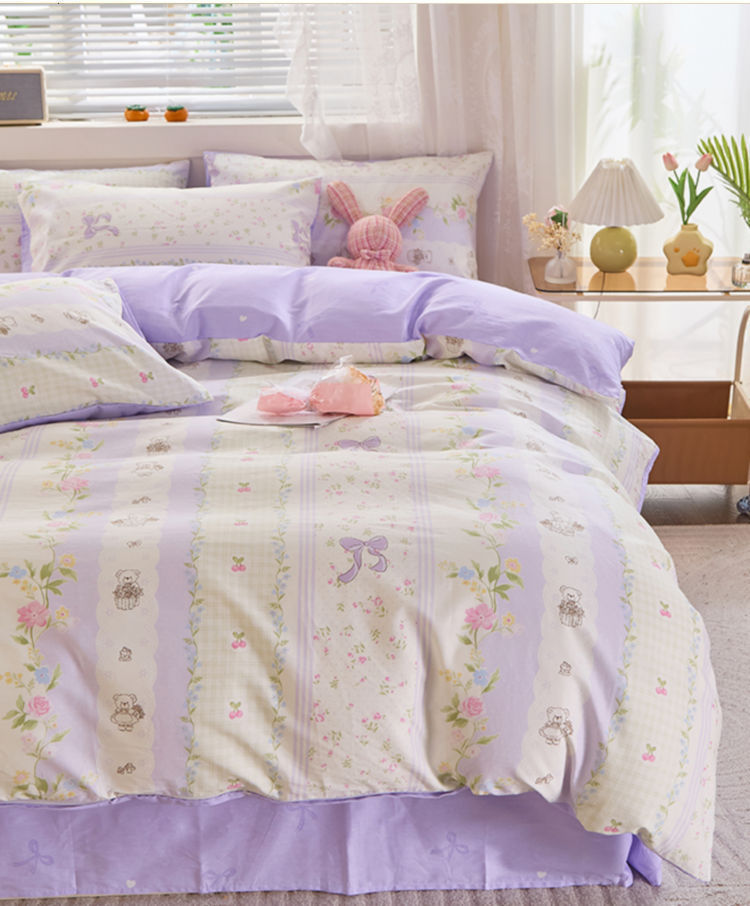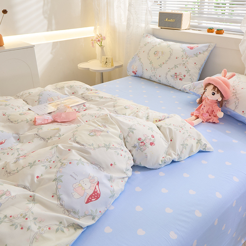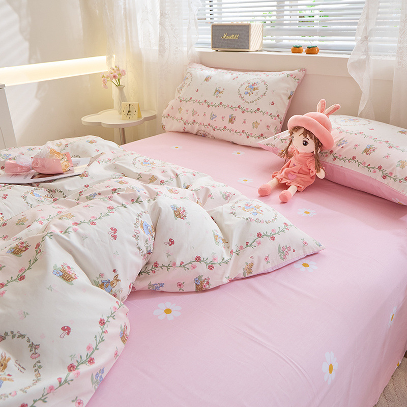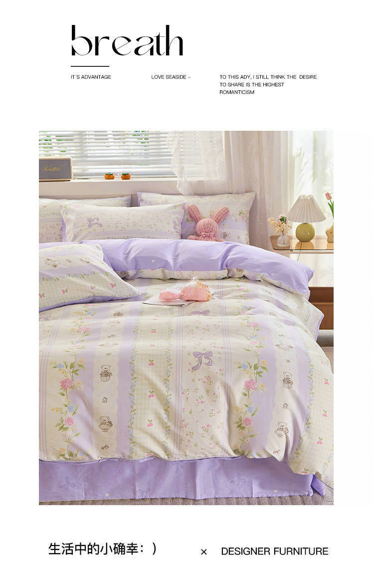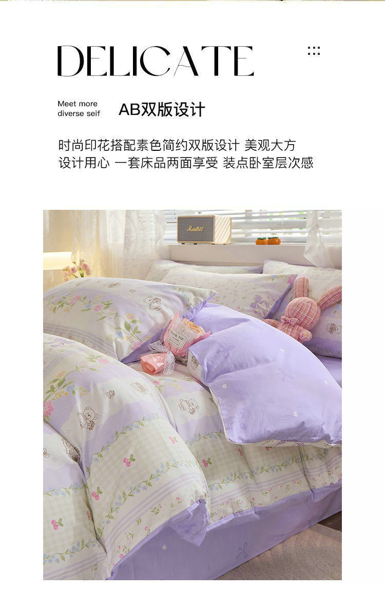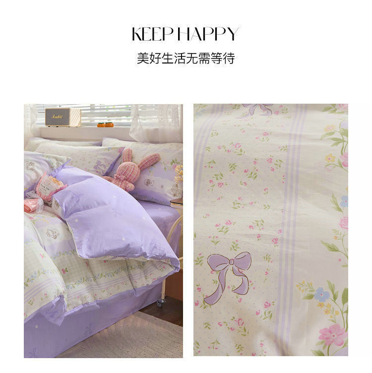 Ins 스타일 작은 꽃 면화 13372 4 피스 세트 코튼 소녀의 심장 침대 시트 퀼트 커버 학생 기숙사 3 피스 세트스토어 가기