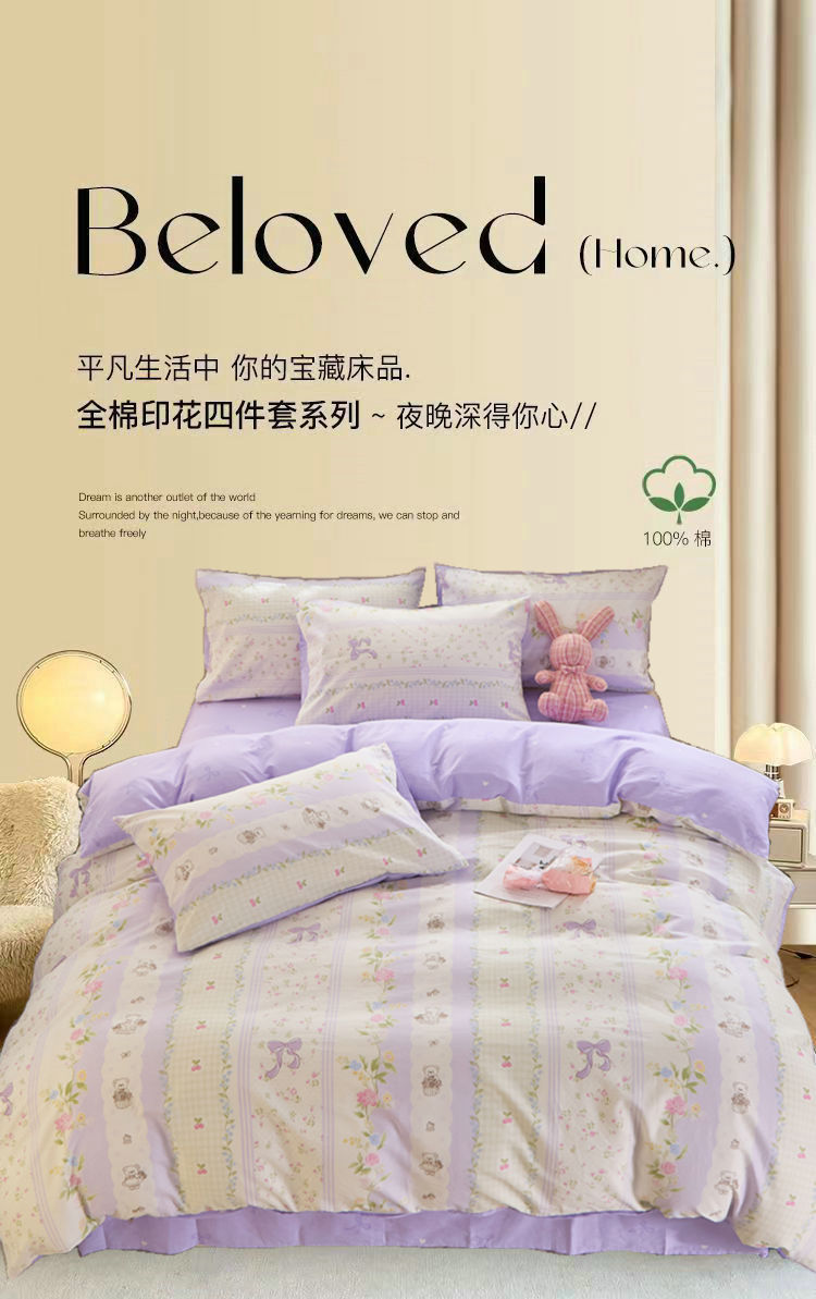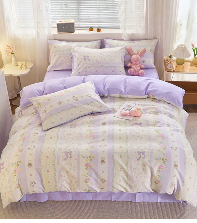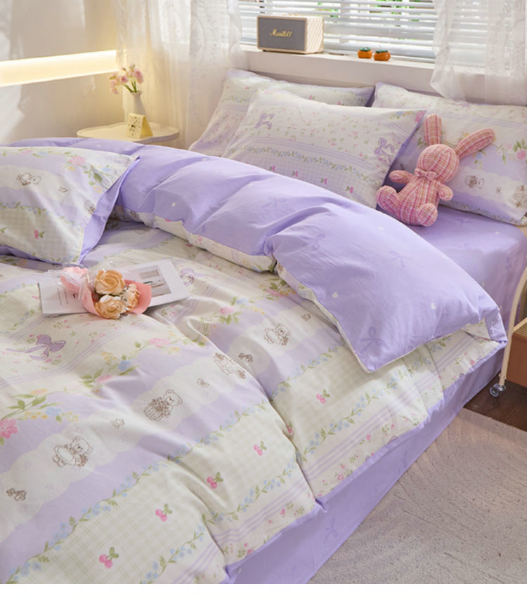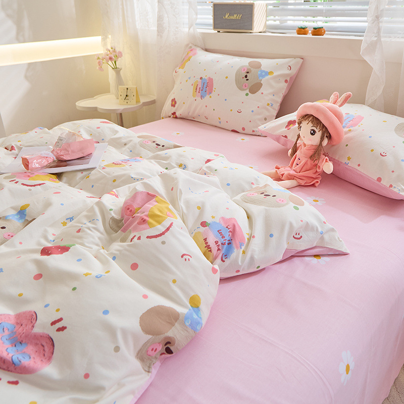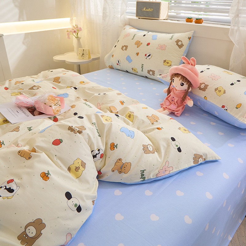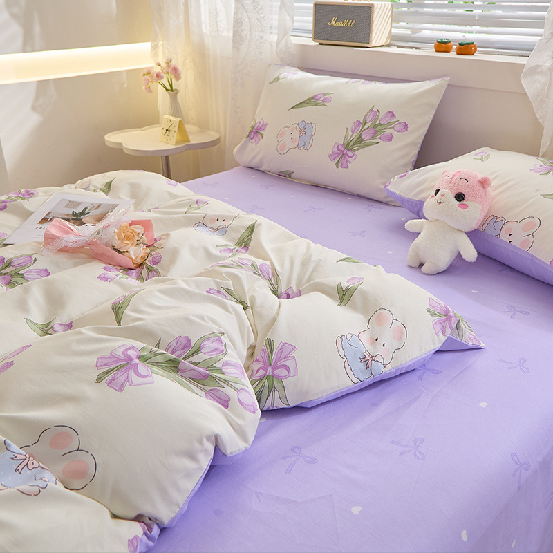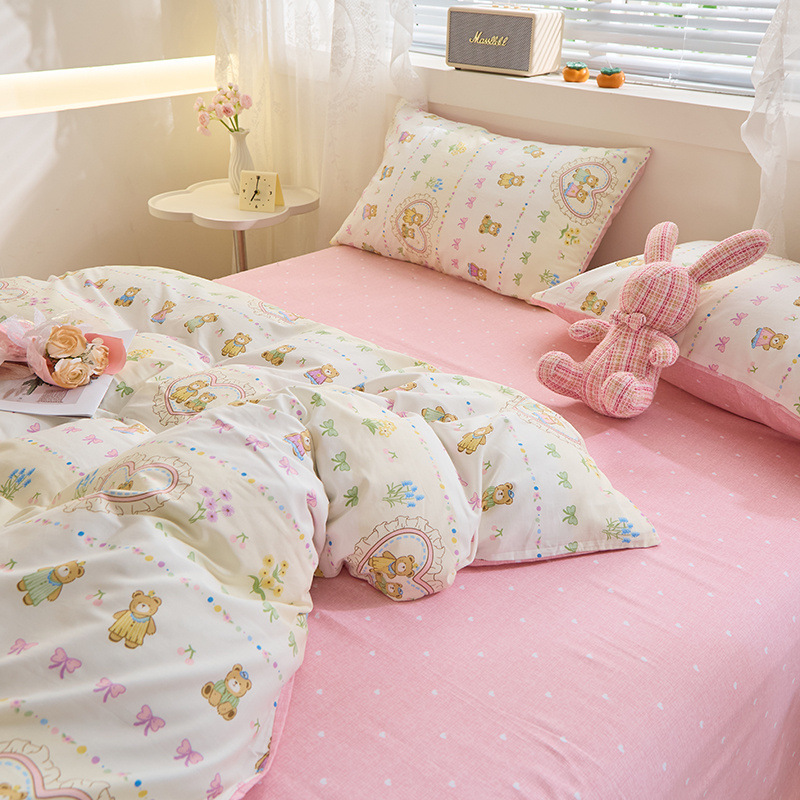 Ins 스타일 작은 꽃 면화 13372 4 피스 세트 코튼 소녀의 심장 침대 시트 퀼트 커버 학생 기숙사 3 피스 세트스토어 가기