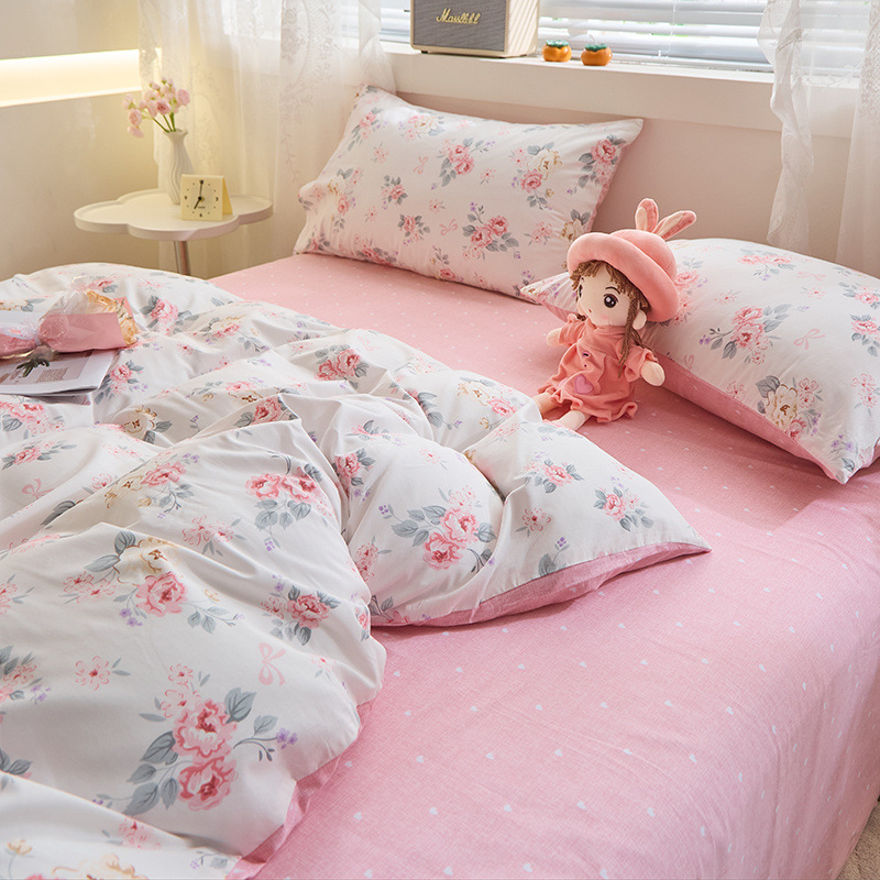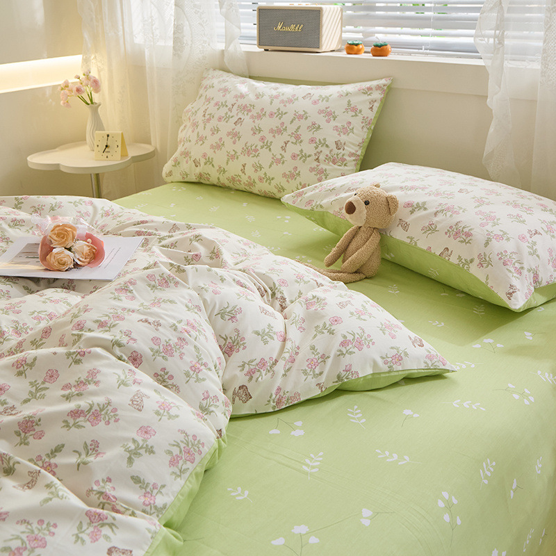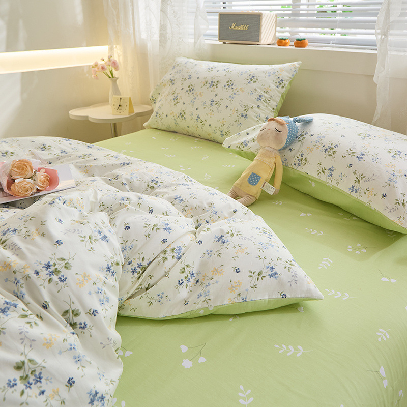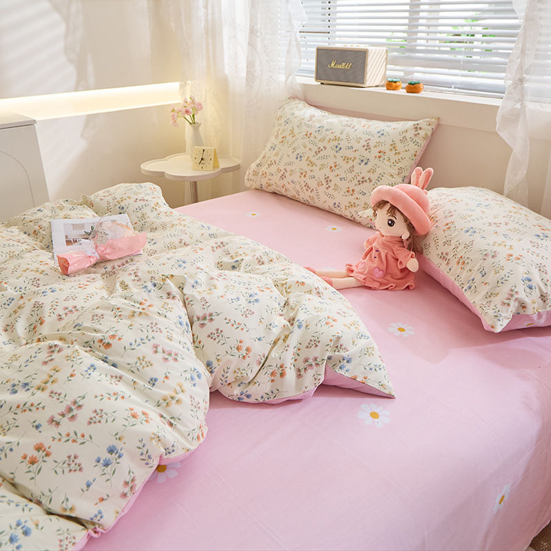 Ins 스타일 작은 꽃 면화 13372 4 피스 세트 코튼 소녀의 심장 침대 시트 퀼트 커버 학생 기숙사 3 피스 세트