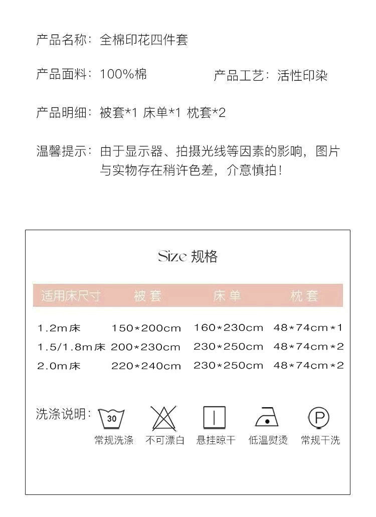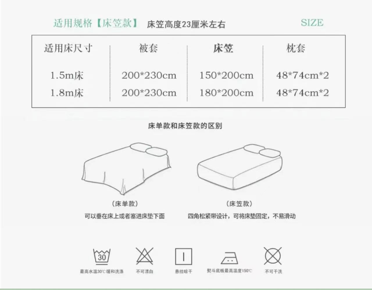 • 1.5m 침대 [시트 4개 세트] - 200x230cm 이불심에 적합