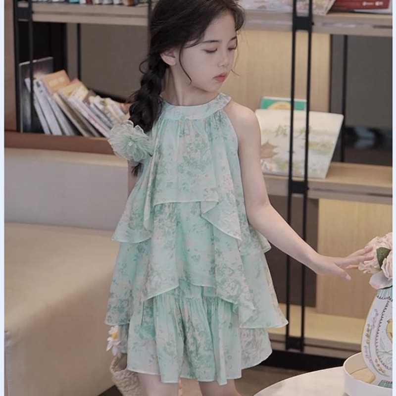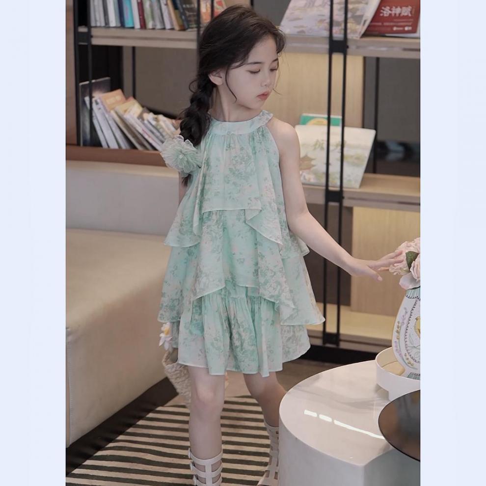 여자 세트 여름 2025 새로운 서양식 한국 스타일 어린이 스커트 대형 어린이 민소매 꽃 스커트 투피스 세트
