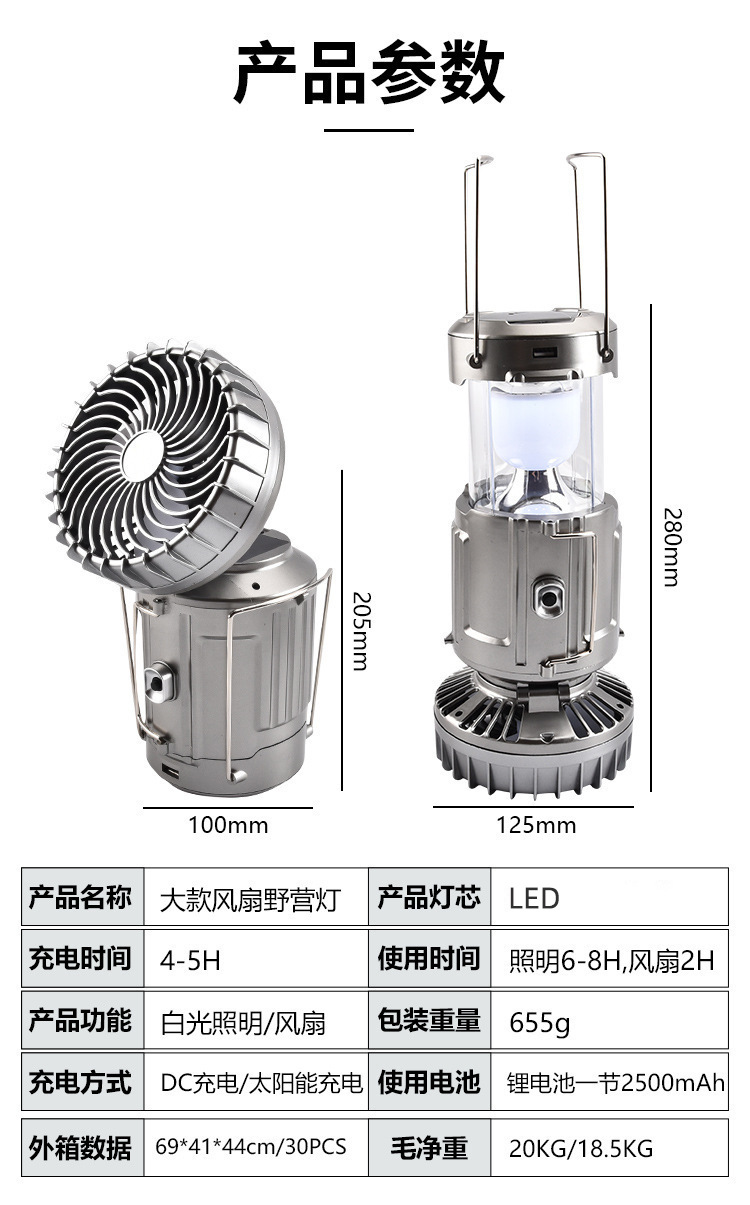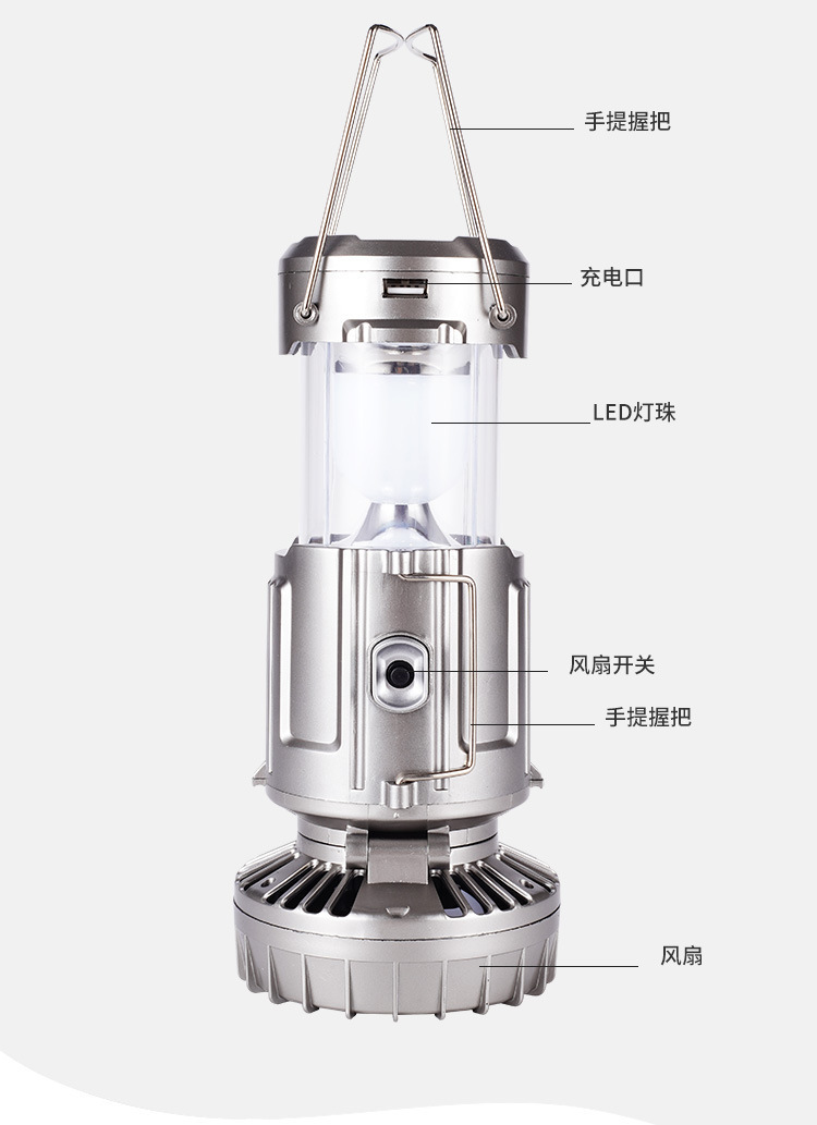 Ruiying 야외 태양 전기 팬 랜턴 텐트 휴대용 충전식 가정용 탐조등 다기능 캠핑 조명