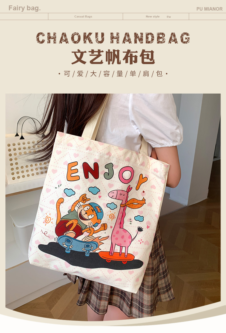 원래 캔버스 가방 틈새 숄더백 2025 새로운 여학생 튜토리얼 가방 대용량 쇼핑백 도매스토어 가기