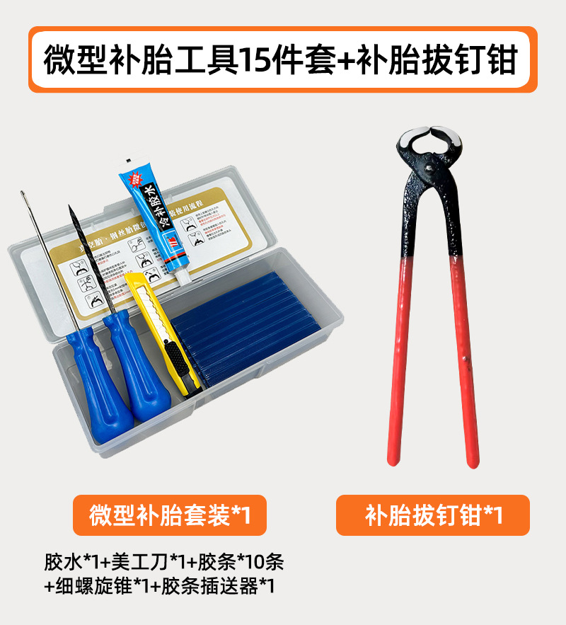 • 15종 소형 타이어 수리 도구 세트 + 타이어 수리 못 제거 펜치