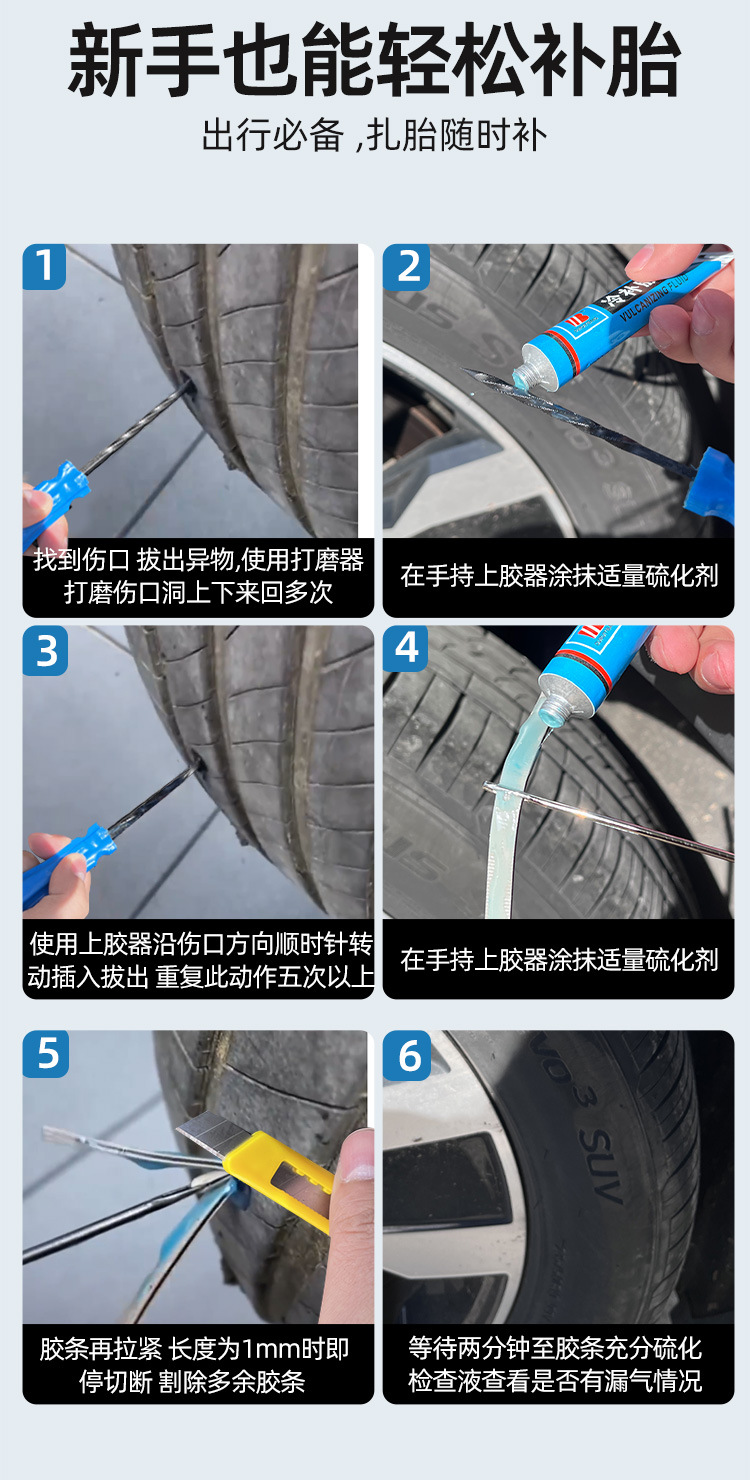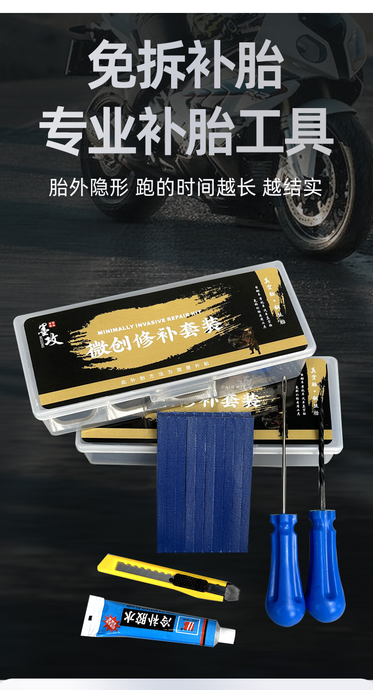 최소 침습 타이어 수리 도구 세트 전기 자동차 오토바이 자동차 진공 타이어 빠른 수리 가황 고무 스트립 접착제