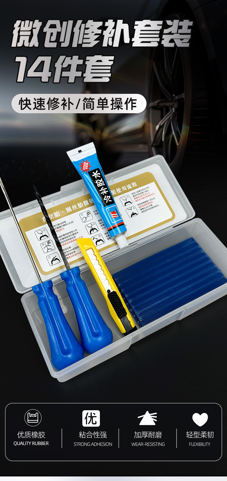 • 최소 침습 타이어 수리 도구 세트 15개 + 접착제 1개