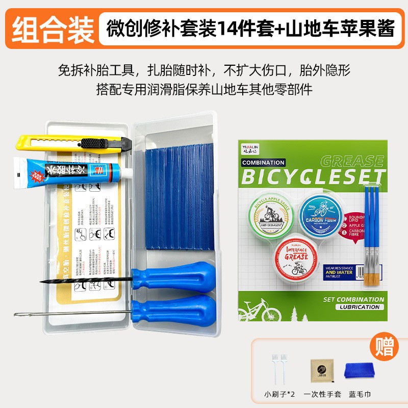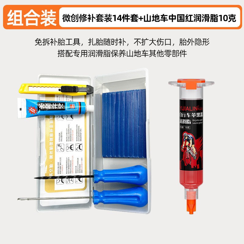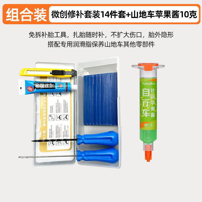 • 타이어 수리 도구 세트 15개 + 산악자전거 사과소스 그리스 - 10g (주사기형)