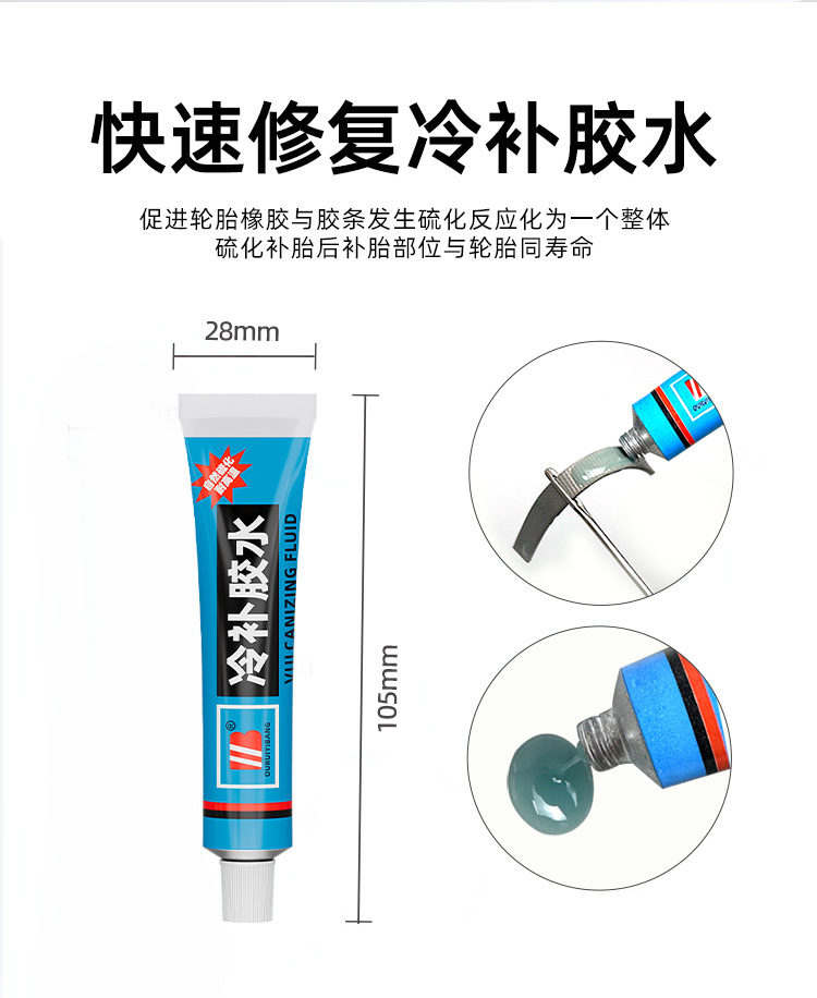 • 소형 튜브리스 타이어 빠른 수리 키트 + 접착제 2개 + 접착 스트립 10개