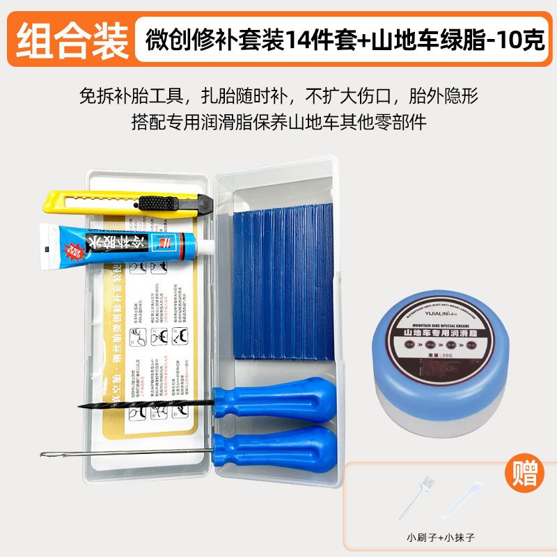 • 타이어 수리 도구 세트 15개 + 산악자전거 그리스 30g - 녹색 그리스(소형 브러시 + 소형 흙손 포함)