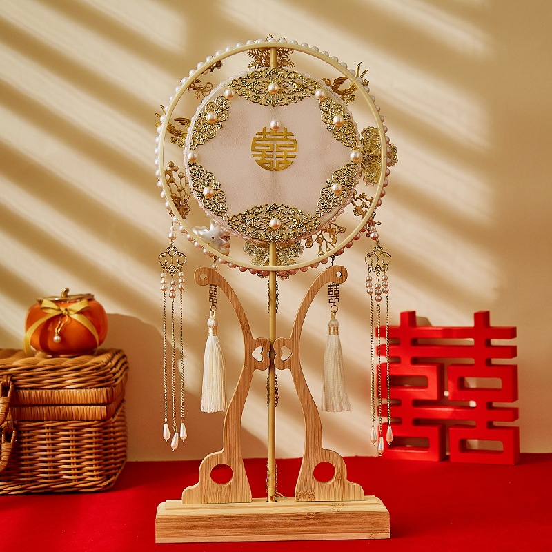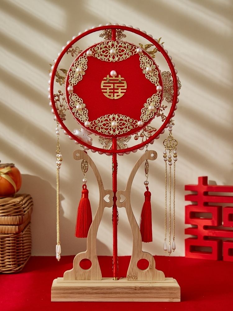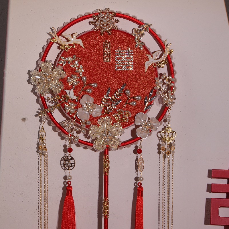 신제품 라운드 팬 도매 웨딩 신부 xiuhe 수제 웨딩 팬 중국 스타일 팬 레드 타셀 완성 라운드 팬 9139스토어 가기