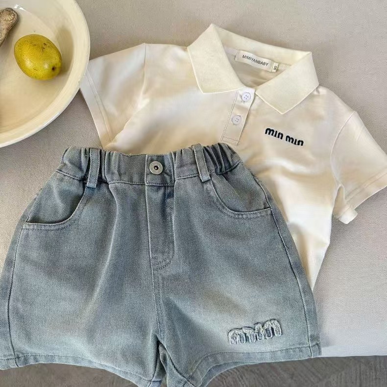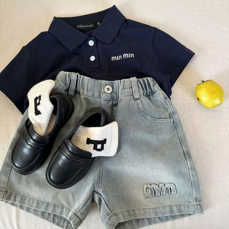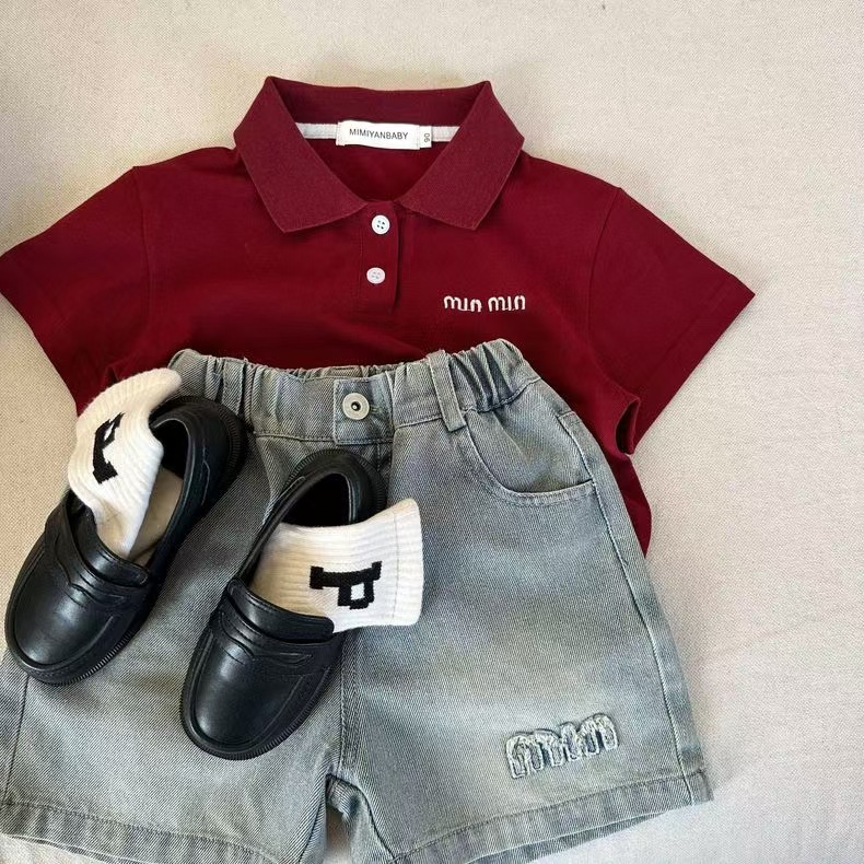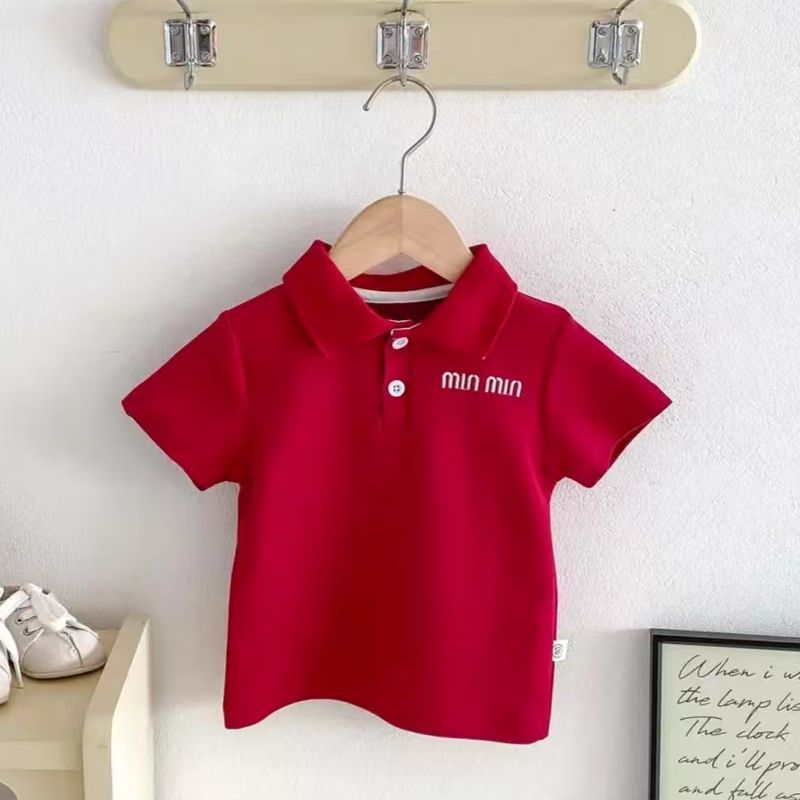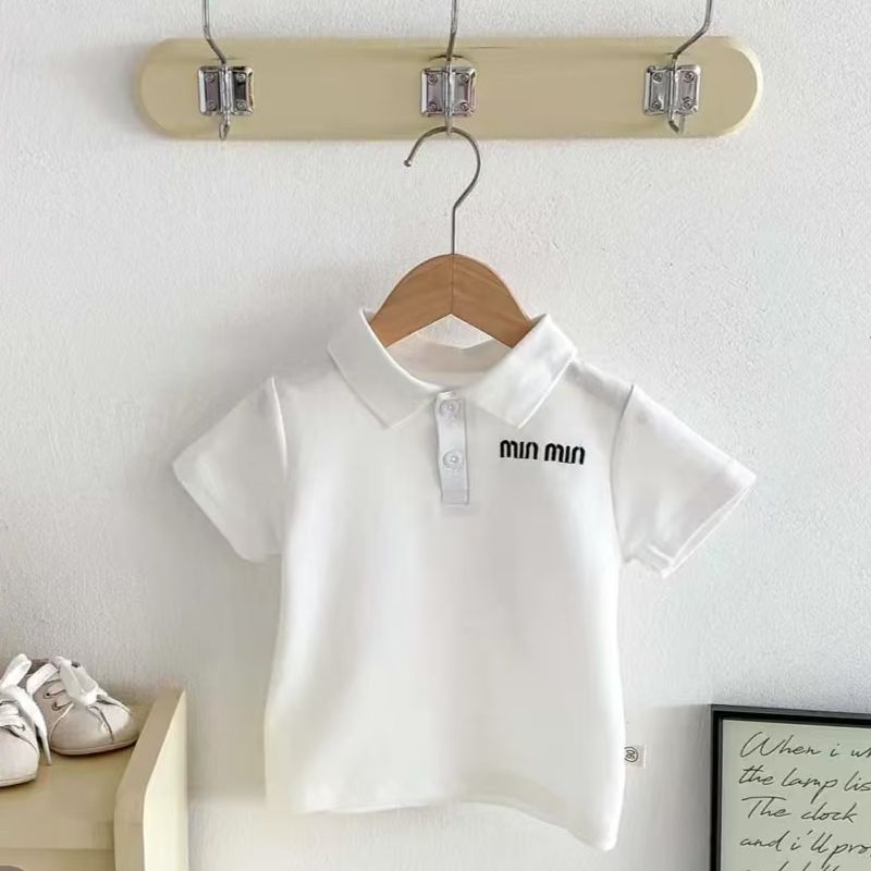 여름 껍질 면화 어린이 폴로 셔츠 간단한 2025 여름 새로운 티셔츠 서양식 소년 소녀 옷깃 탑스토어 가기