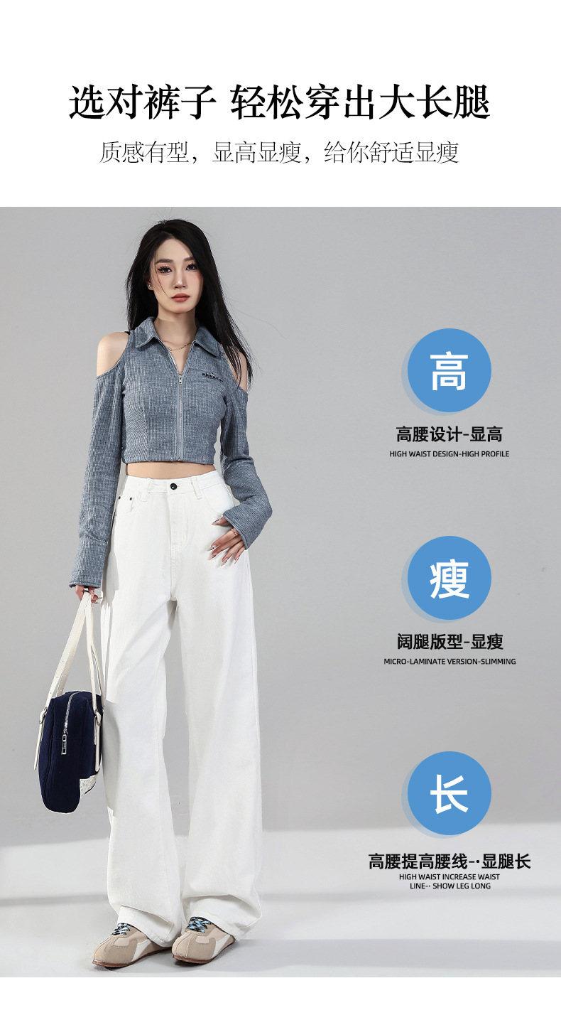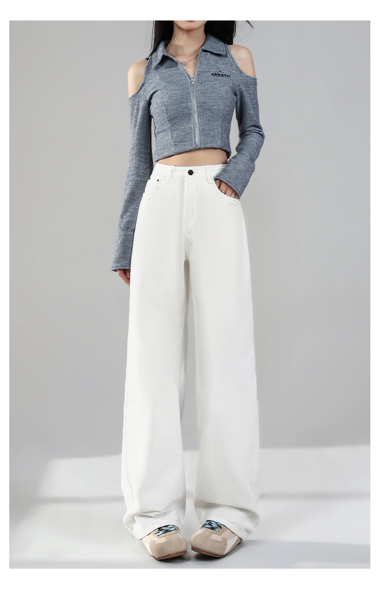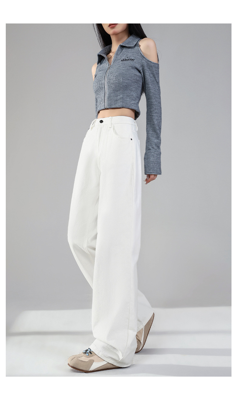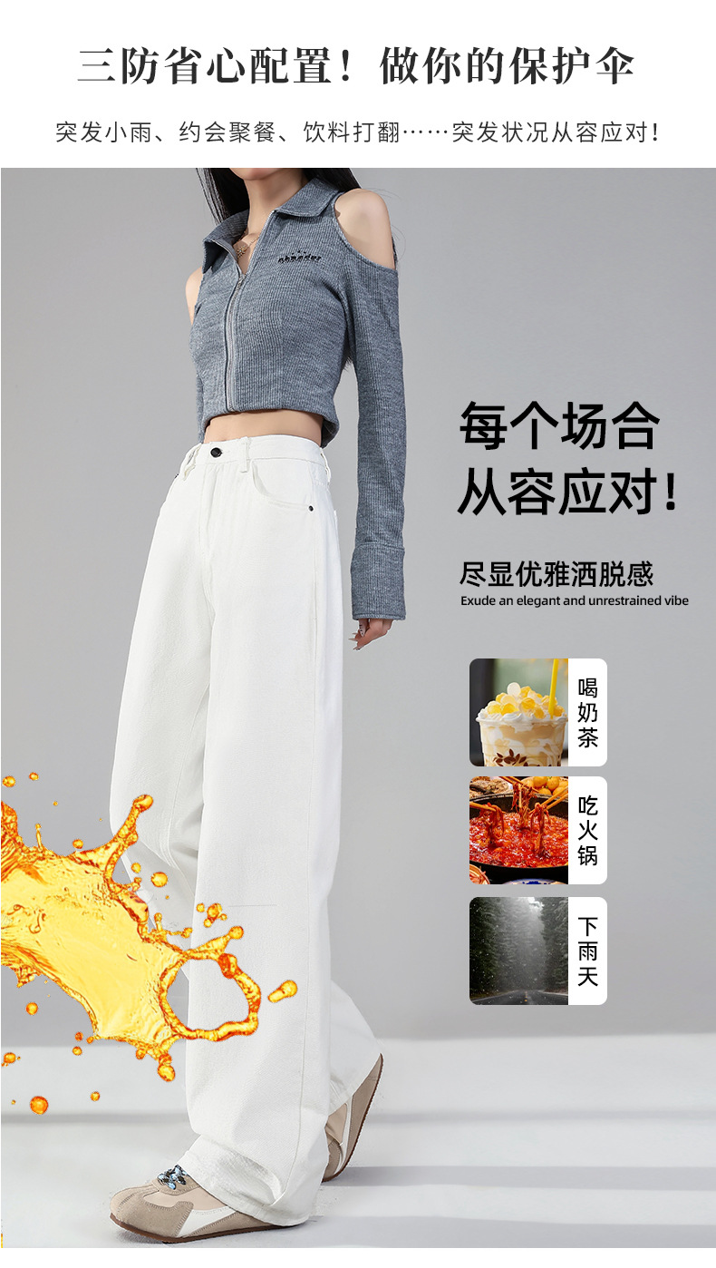 화이트 데님 와이드 팬츠 여성용 2026년 봄 신상 하이웨이스트 슬림핏 드레이프 루즈핏 3중 방수 스트레이트 팬츠스토어 가기