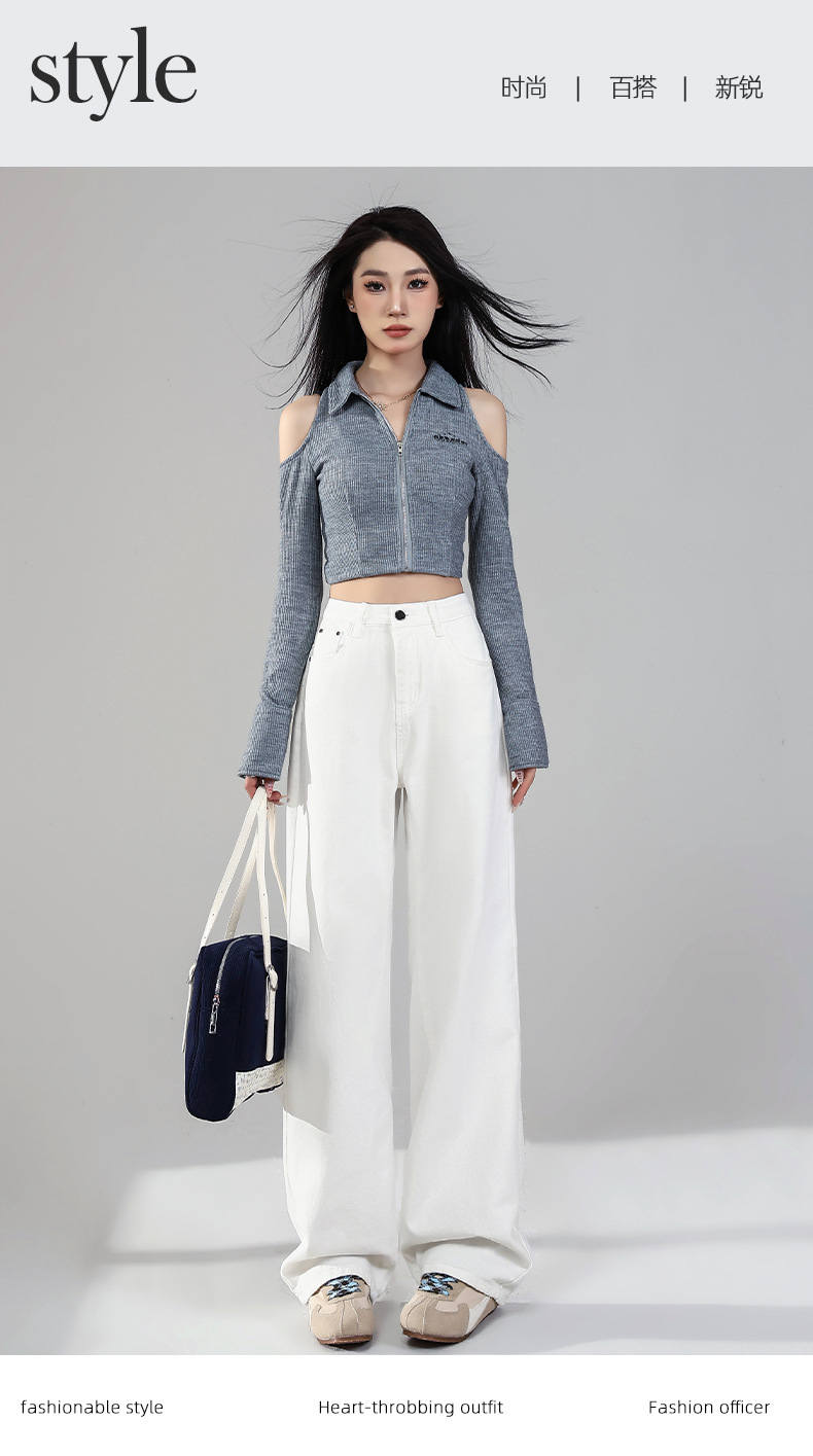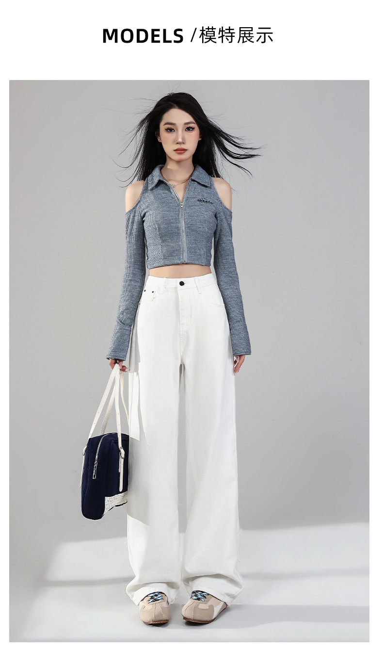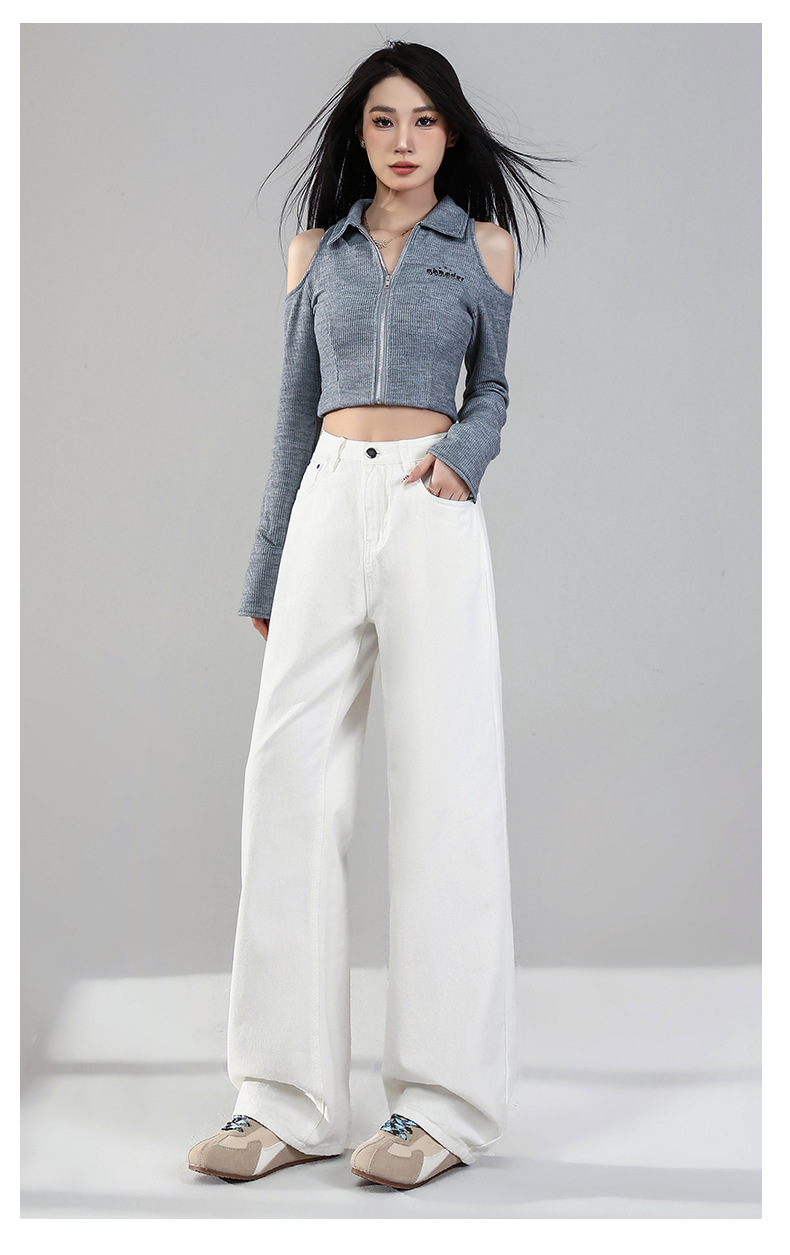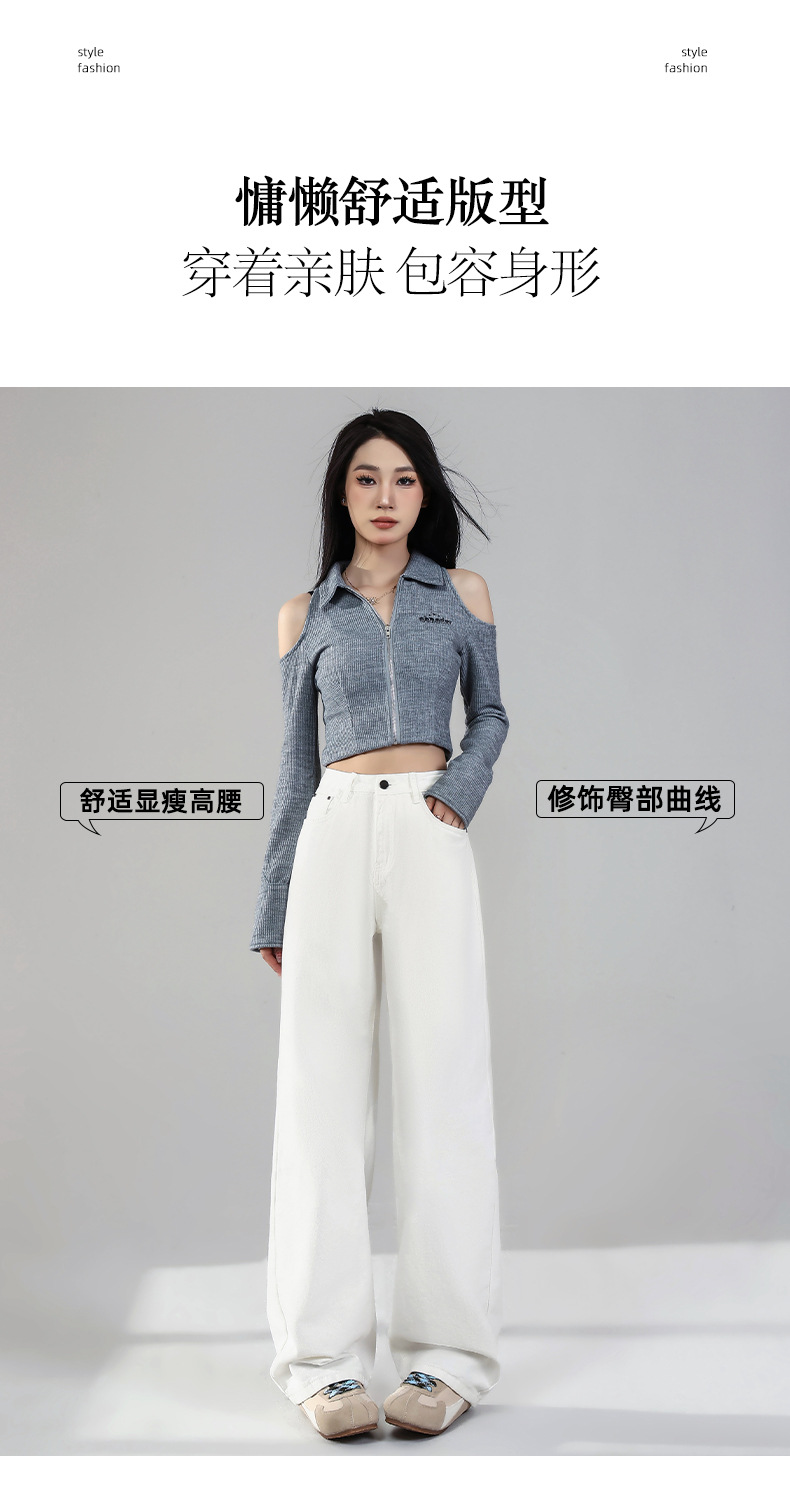 화이트 데님 와이드 팬츠 여성용 2026년 봄 신상 하이웨이스트 슬림핏 드레이프 루즈핏 3중 방수 스트레이트 팬츠스토어 가기