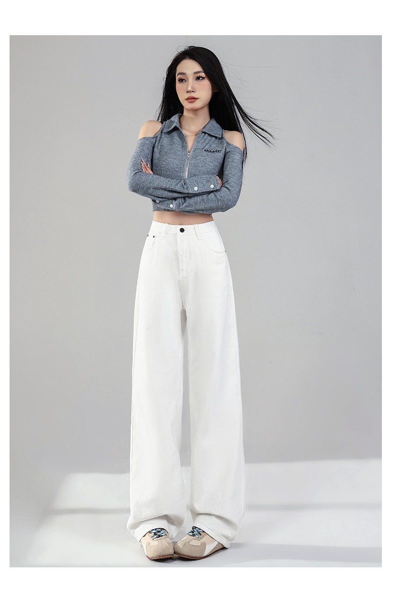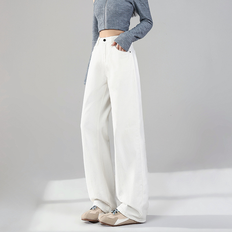 화이트 데님 와이드 팬츠 여성용 2026년 봄 신상 하이웨이스트 슬림핏 드레이프 루즈핏 3중 방수 스트레이트 팬츠