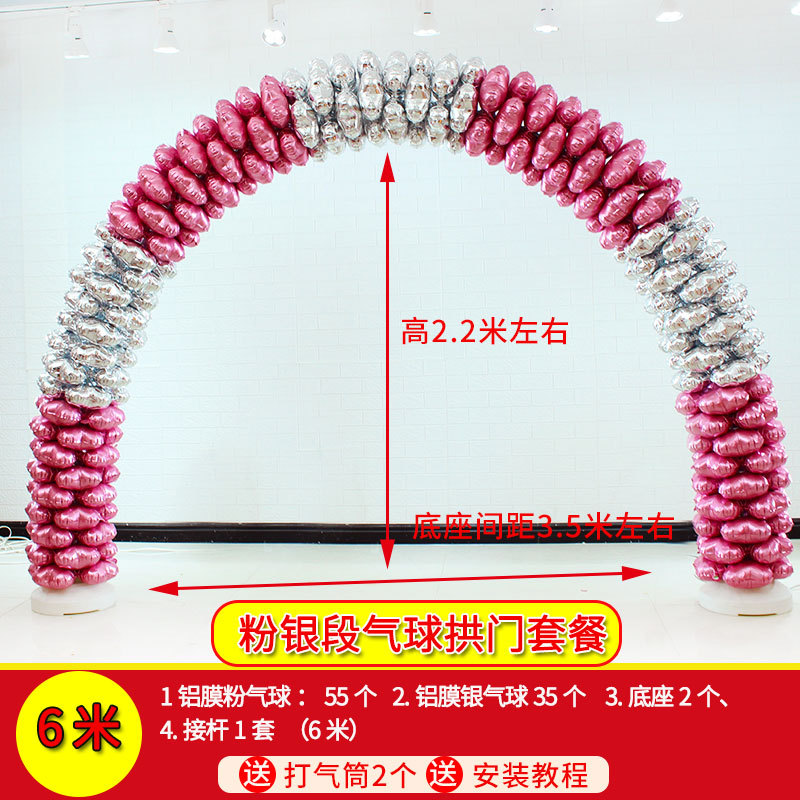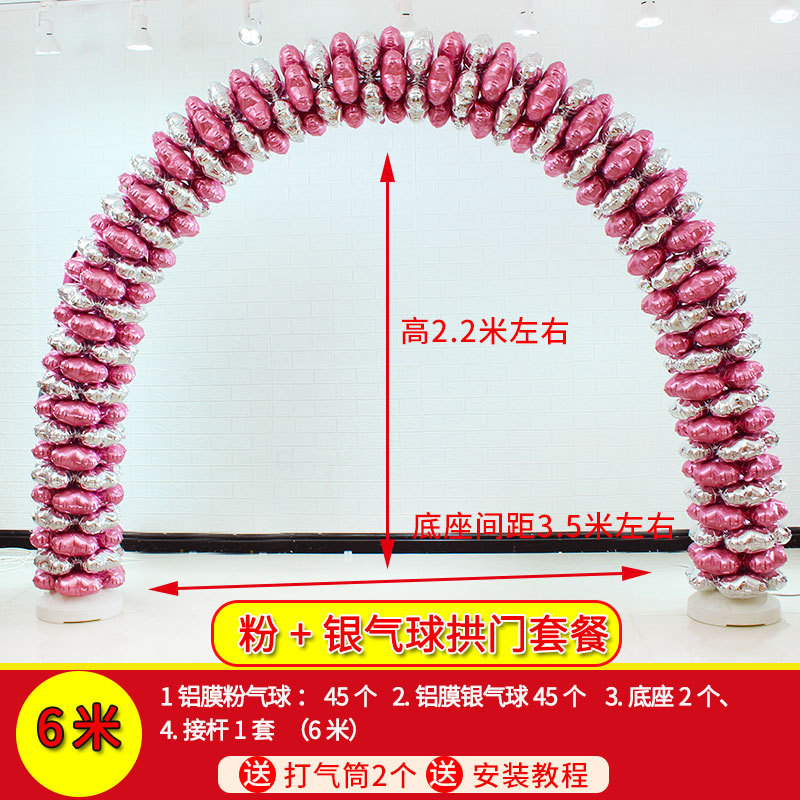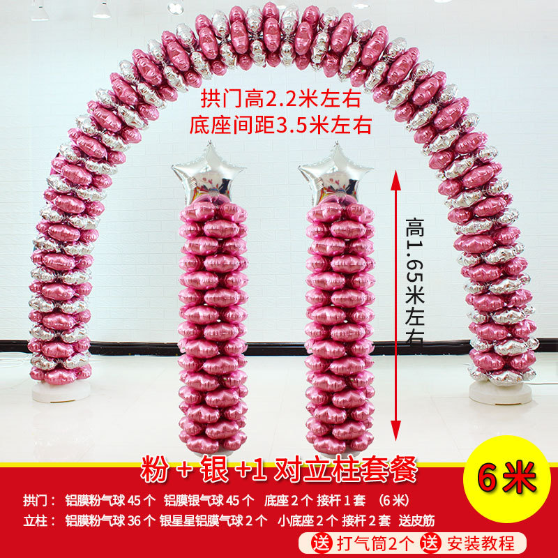 • 알루미늄 필름 풍선 6.1m단 아치 1세트 [핑크+실버 각 46개] + 실버 5성 핑크 풍선 기둥 2세트