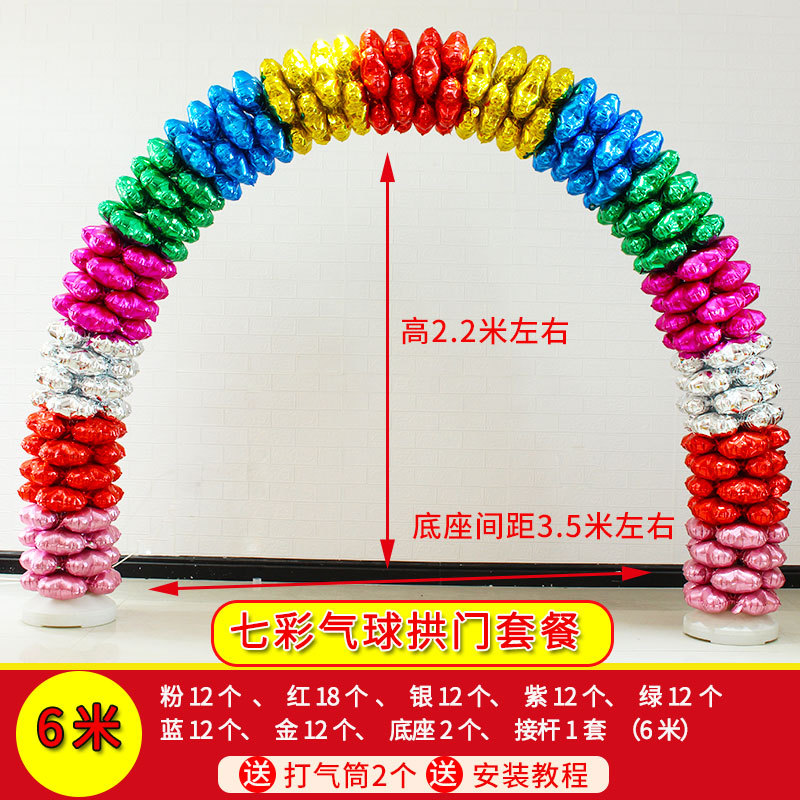 • 알루미늄 필름 풍선 10섹션 아치 1세트 [핑크, 실버, 퍼플, 그린, 블루, 골드 각 12개 + 레드 20개]
