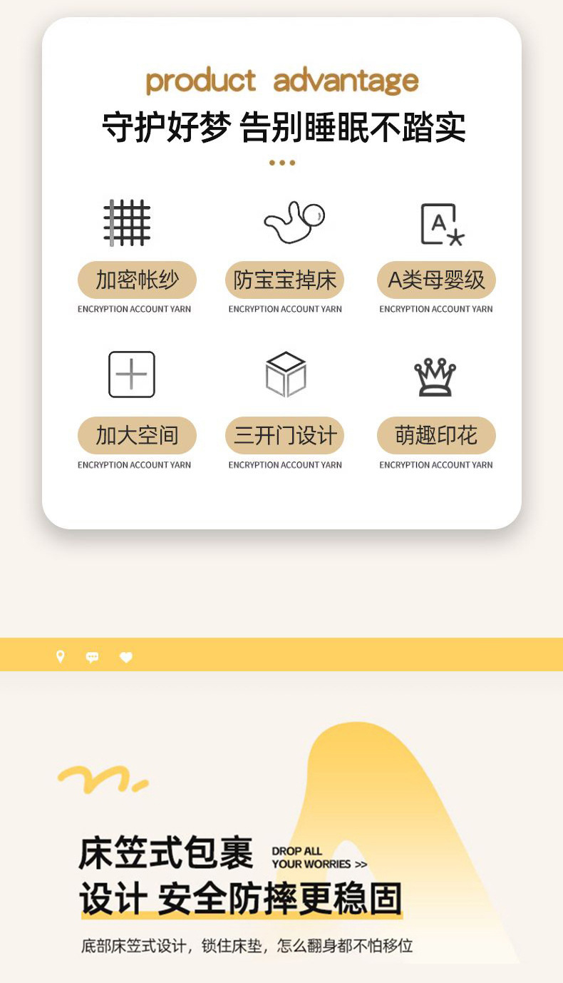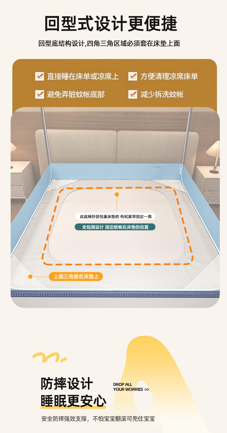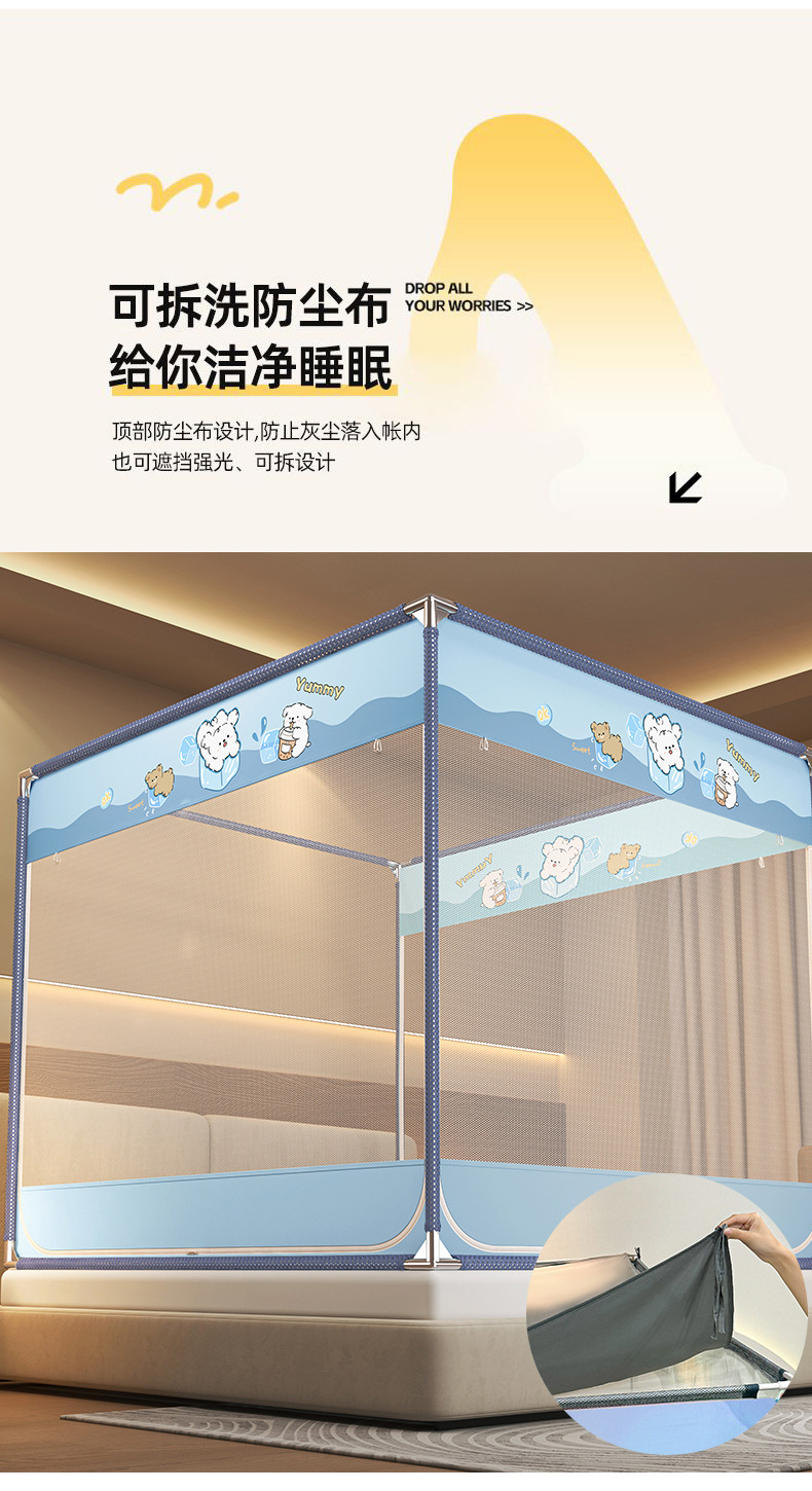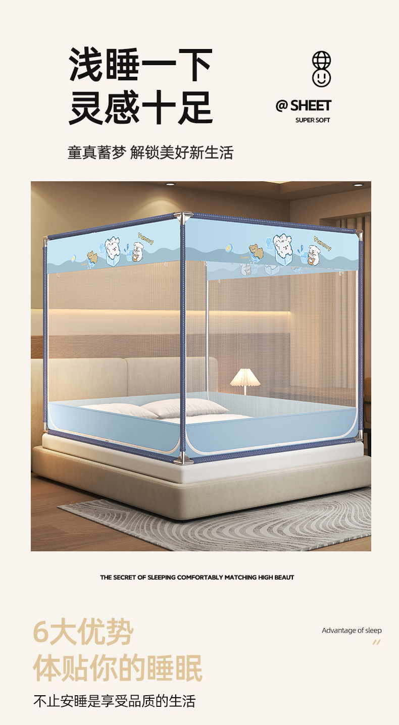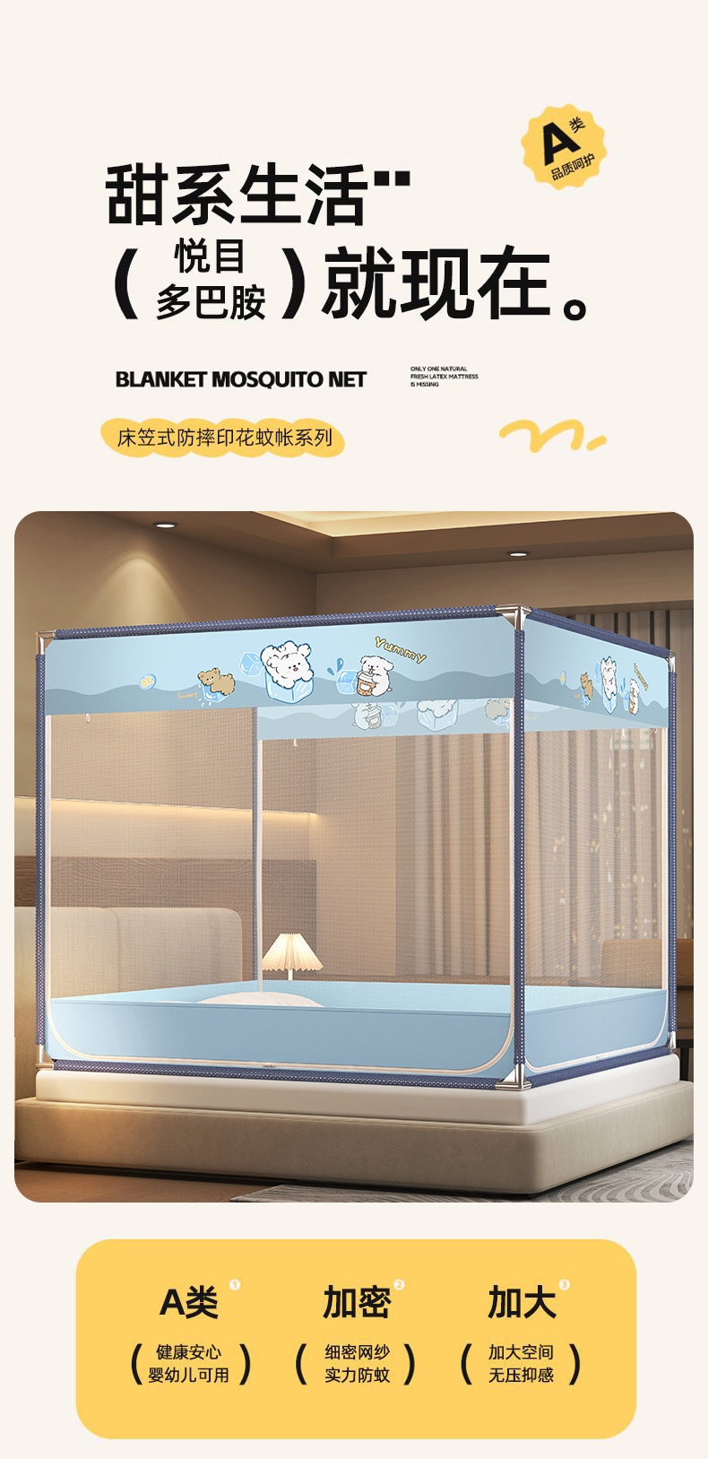 낙하 방지 모기장 홈 침실 2025 새로운 설치 무료 아기 낙하 방지 침대 전체 커버 뒷면 침대 커버 패턴스토어 가기
