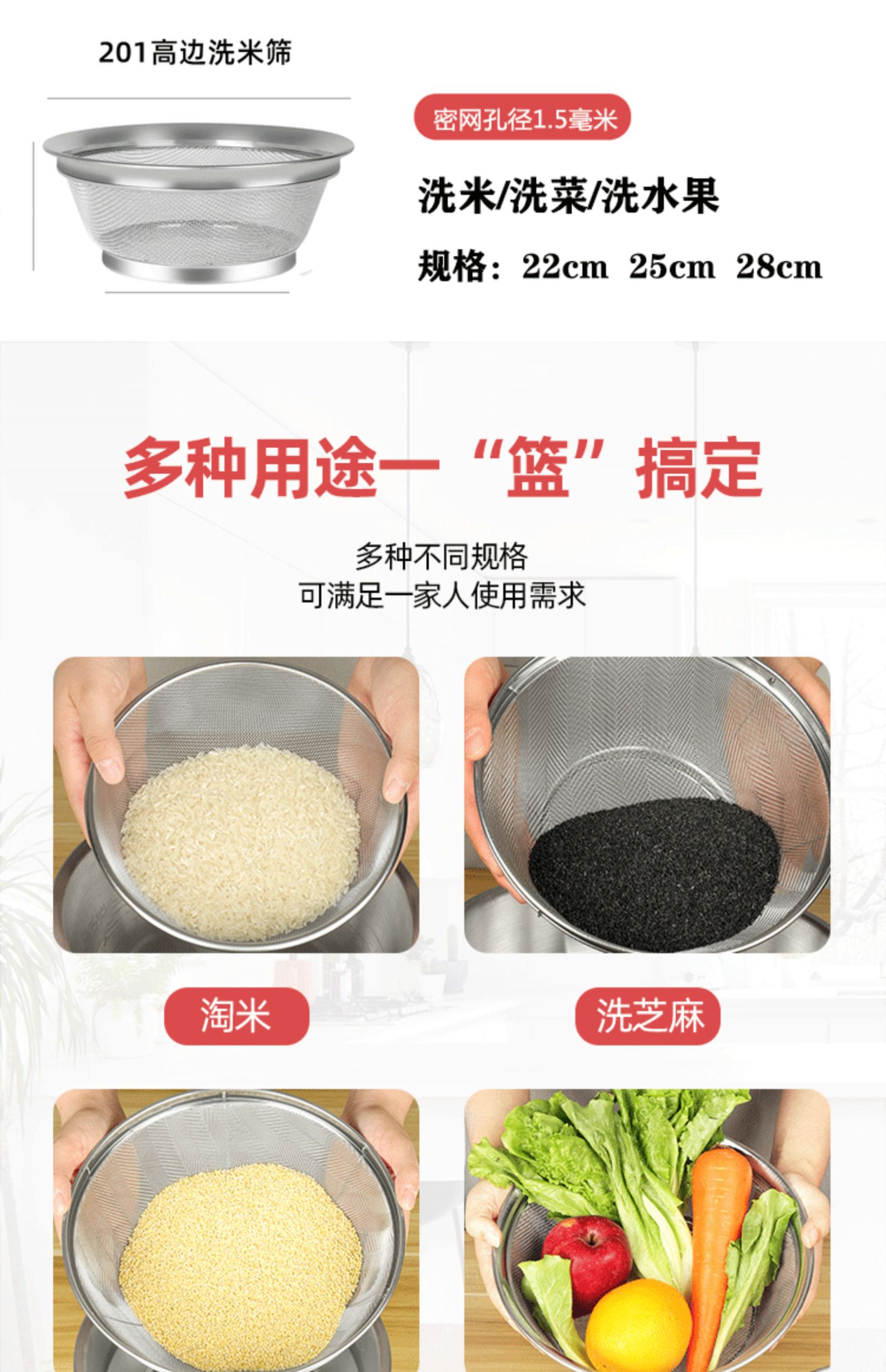 • "25cm 약간 두꺼운 메쉬 모델 ""메쉬 1.2mm"" 쌀과 야채를 씻을 수 있습니다."