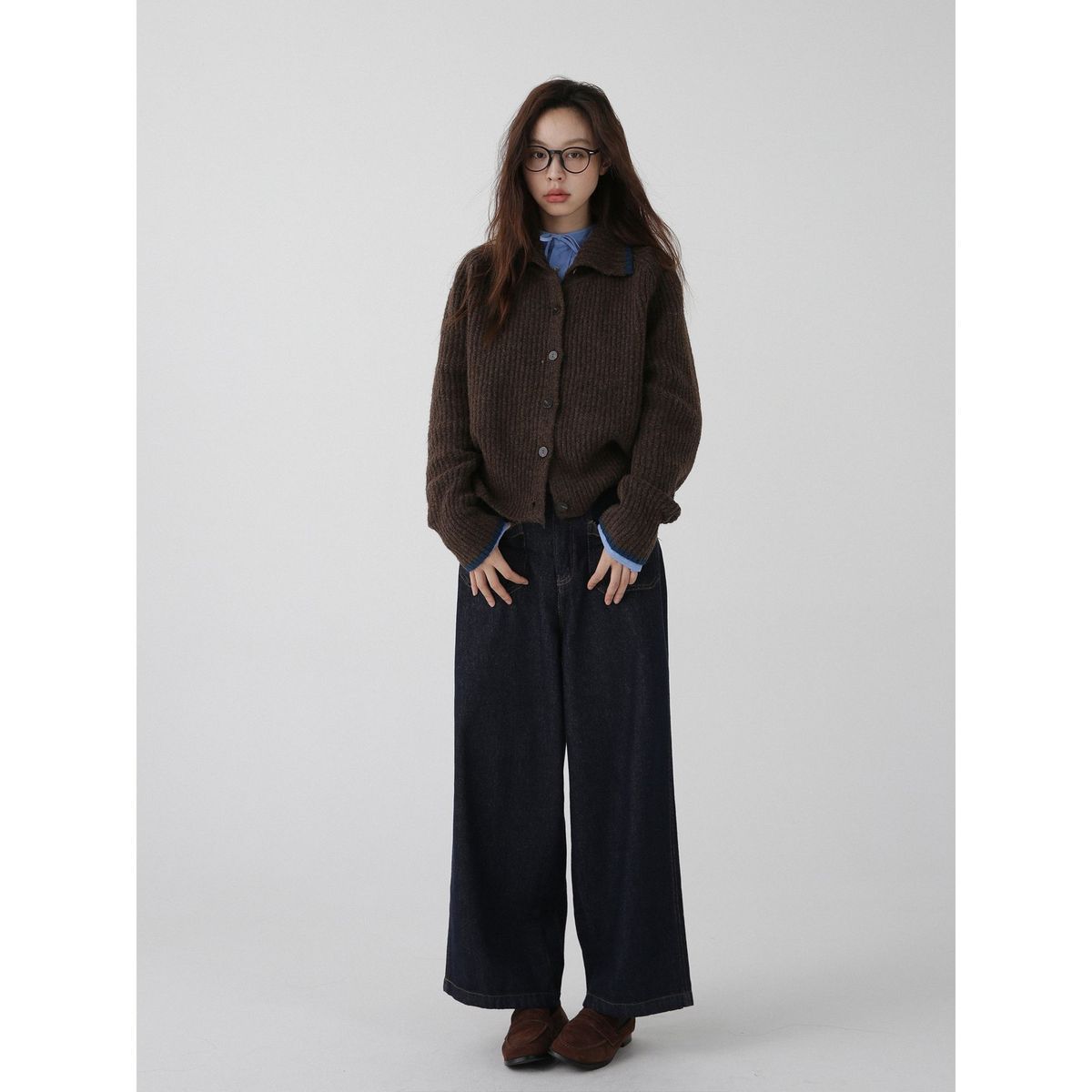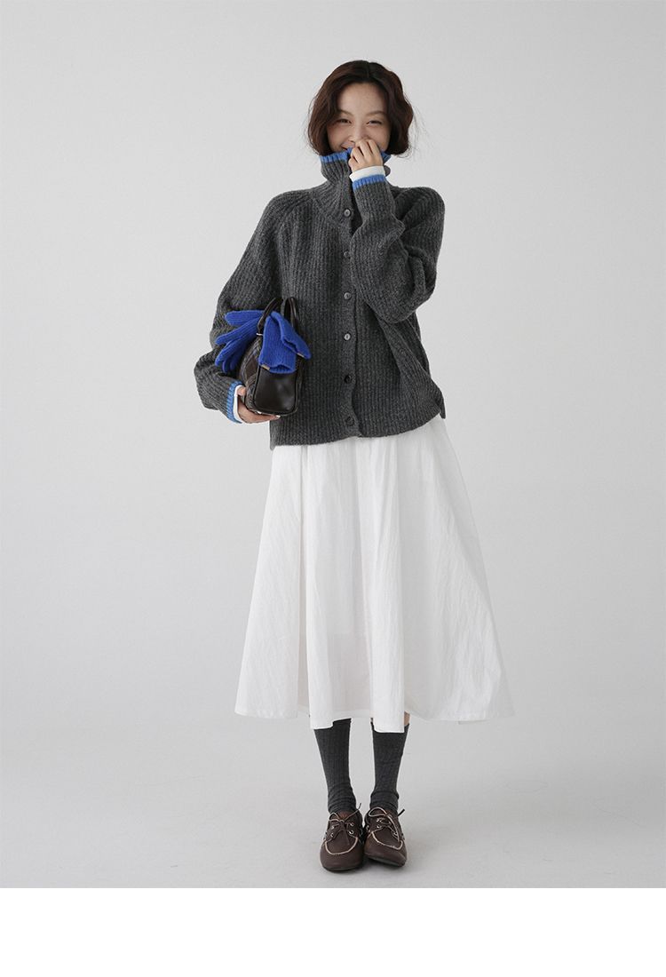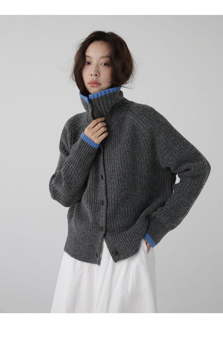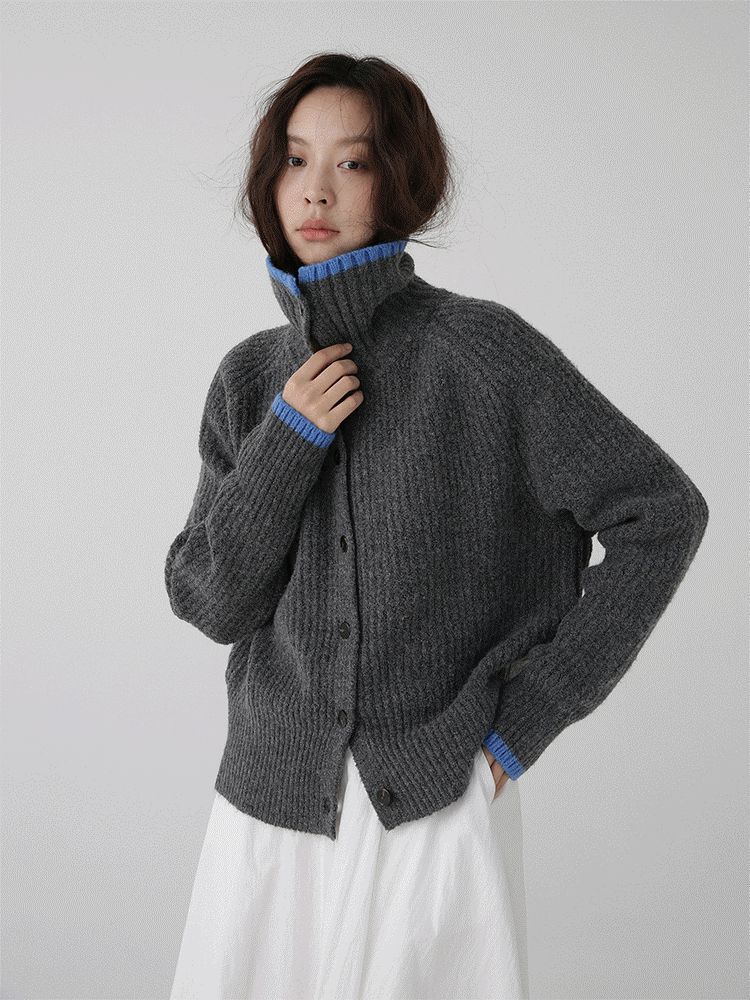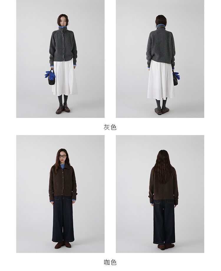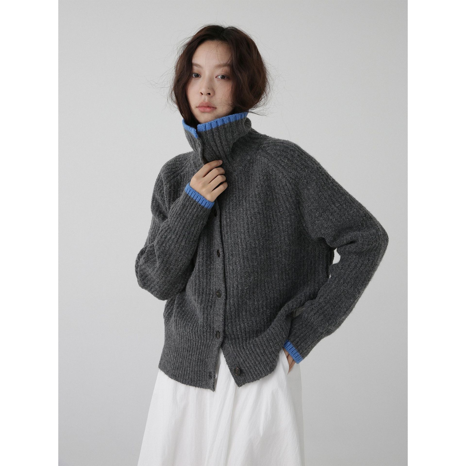 【양롱세가】한국 스타일의 레이지 스타일 그레이 니트 가디건, 배색 칼라 스웨터, 여성용 가을 겨울 아우터스토어 가기