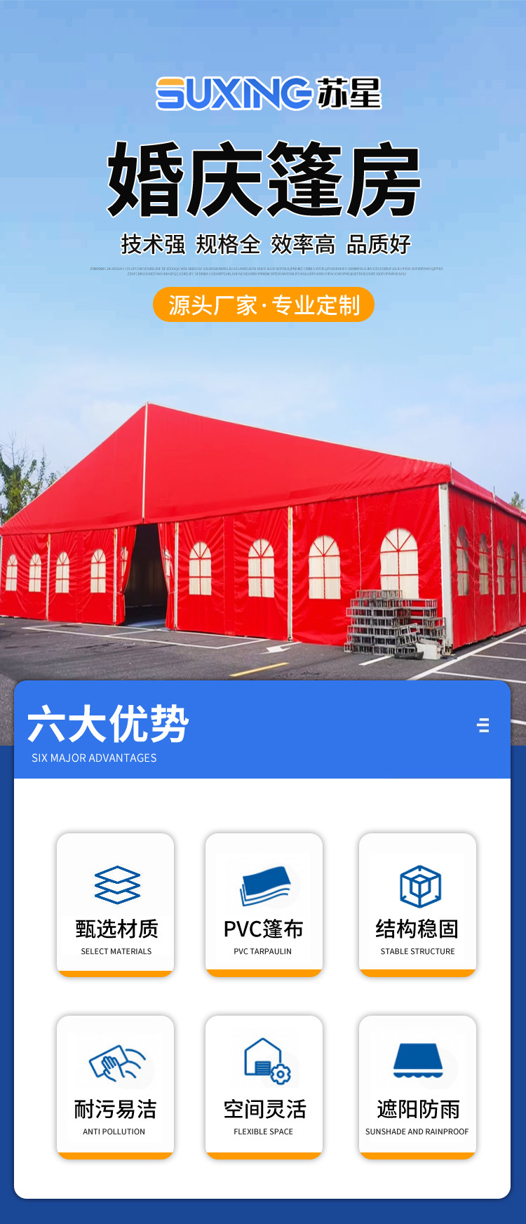 야외 연회 텐트 모바일 연회 빨간색과 흰색 결혼식 이벤트 큰 비 그늘 온실 결혼식 축하 텐트