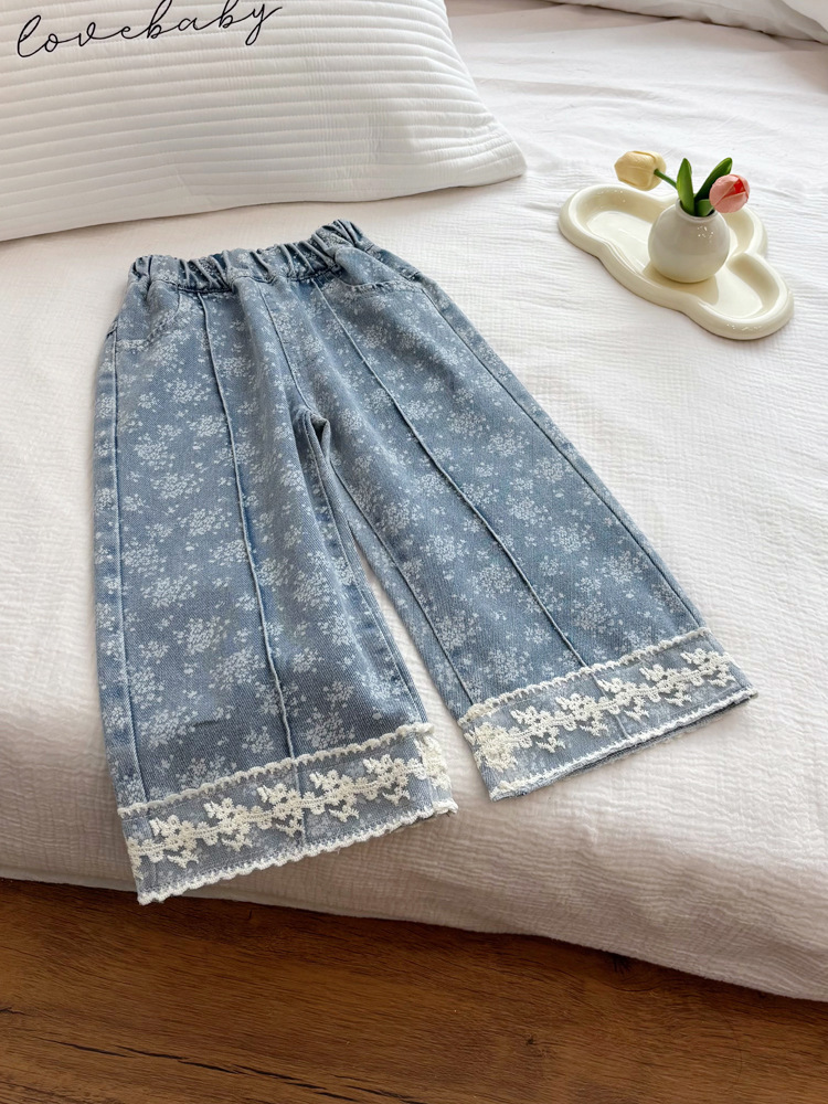 여자 한국식 패션 레이스 꽃 청바지 세련된 올매치 어린이 캐주얼 바지 Ouruo 스타일 착용스토어 가기